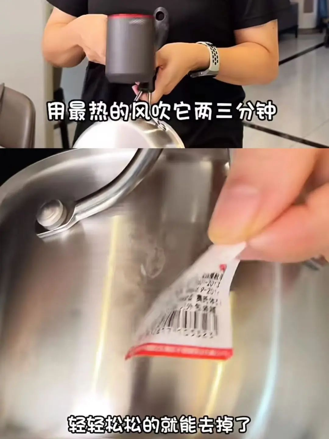 新买的杯子、碗上面贴着的标签往往不好撕开,可以用吹风机吹一下,撕起来就很轻松了,其他地方的胶带也可以用这个方法。