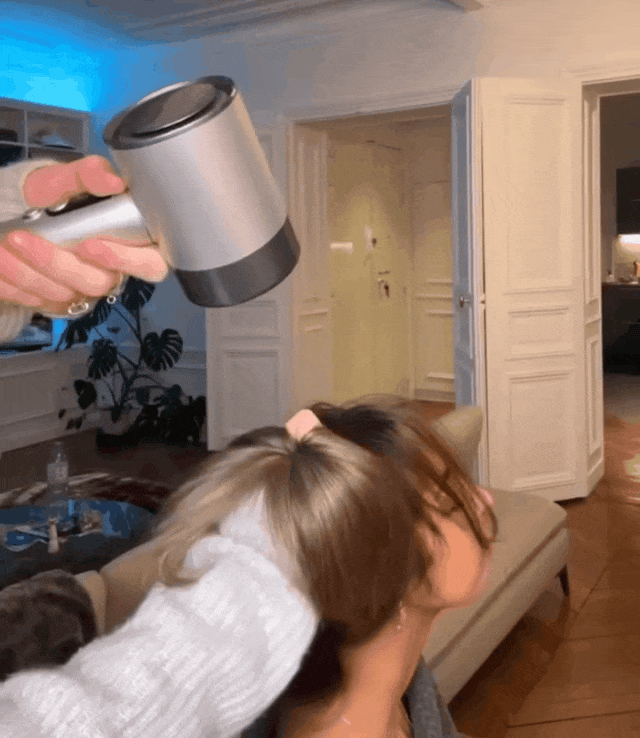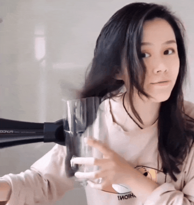 如果你有个贴心的队友,可以让他把发梢握在手中,用吹风机吹一会,就能拥有一个自然而漂亮的发尾卷。