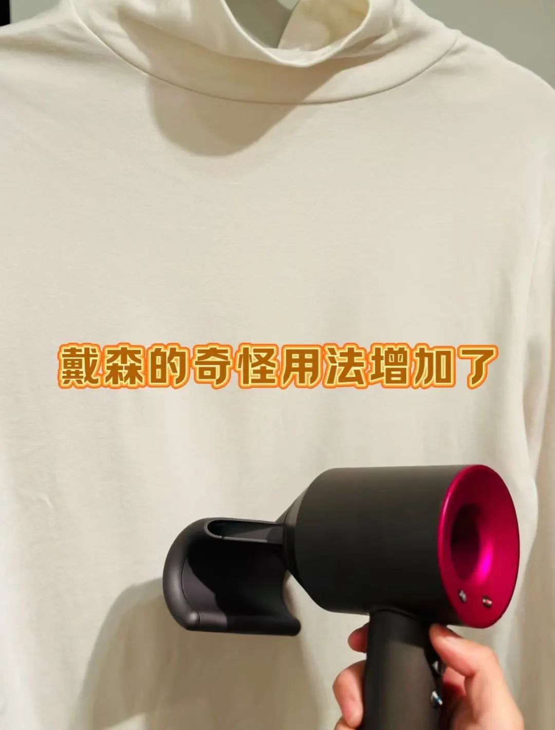 如果你是戴森吹风机,加上放飞翘风嘴,开三档风温,挂烫衣服简直绝了,分分钟无痛去皱,从此拥有了随行急救熨斗。