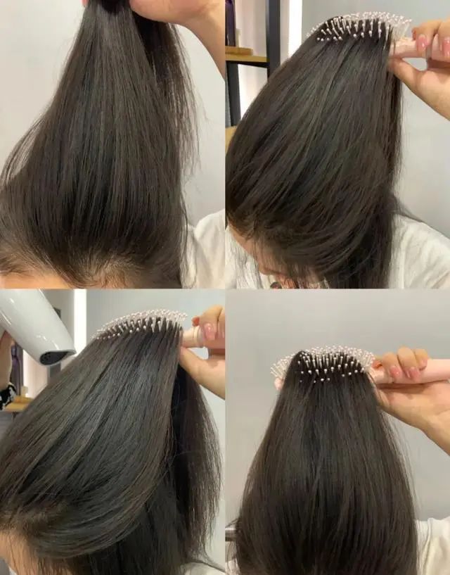 随便用个梳子,把头发根部梳起来,然后稍微往前推一点,配合吹风机对着发根吹个十秒钟,那头发就原地起高楼了!