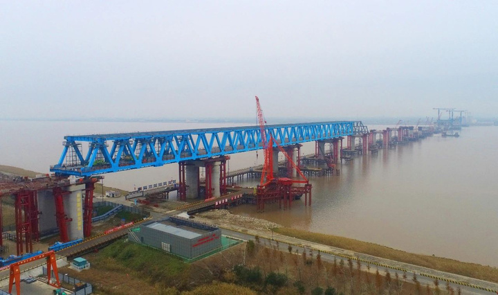 崇启长江公铁大桥:11900吨钢梁顶推入江