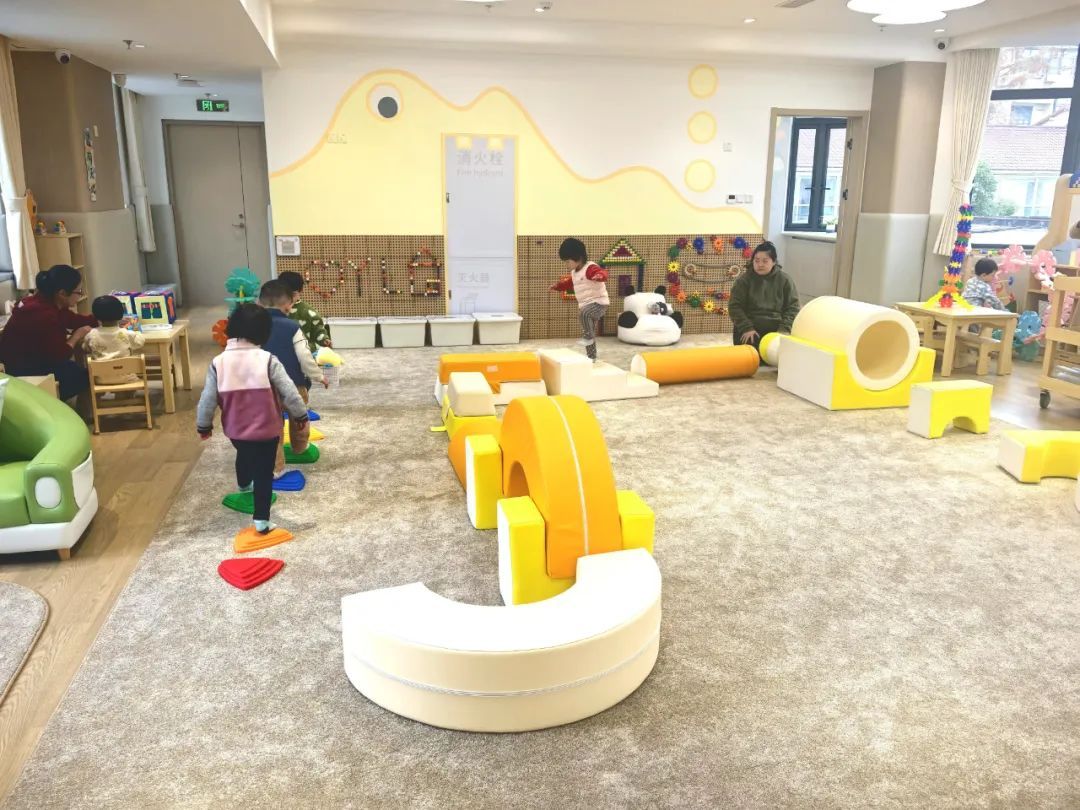宝宝屋内设有舒适生活和综合游戏两大区域,其中,舒适生活区域设置了休息区、婴幼儿盥洗室、母婴室等,综合游戏区设置了感统游戏区、大肌肉运动区、阅读区,建构游戏区、区角游戏区、角色游戏区,为1至3岁的婴幼儿提供各类游戏玩具及设施。活动室内还配有高清视频有声监控、一键报警按钮,智能门禁系统等安全措施,确保入托幼儿的安全。