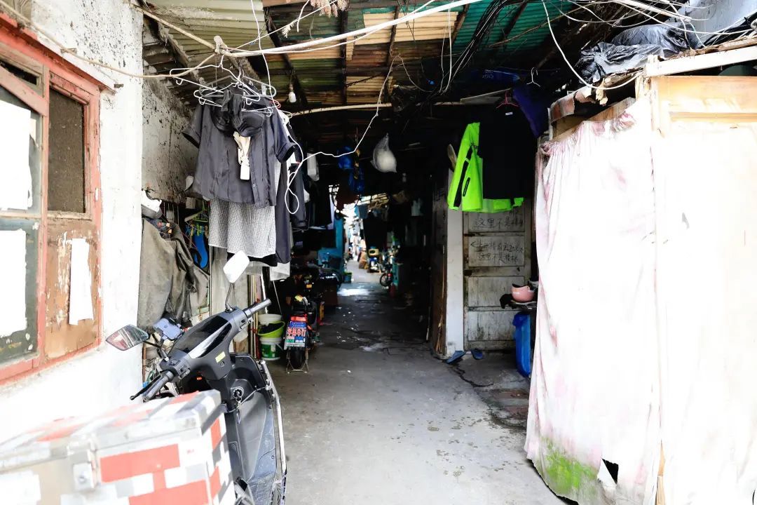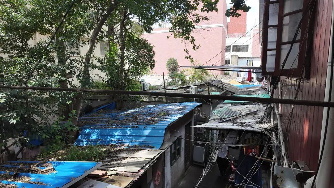 斑驳的墙面、蜘蛛网般的电线、脏乱的环境……走进徽宁路22弄,一排破旧的两层老楼,映入眼帘。始建于1949年左右,砖木结构,内部无厨房,东西两侧各有一处公共卫生间,整体环境较差,房屋老化严重。