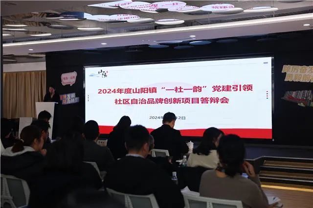 近日,2024年度山阳镇“一社一韵”党建引领社区自治品牌创新项目答辩会在山阳镇社区党群服务中心举行。来自全镇32个社区的项目负责人通过对各自创新品牌介绍、现场答辩等方式,集中展示项目建设成果,最终产生了“十佳优秀品牌”。