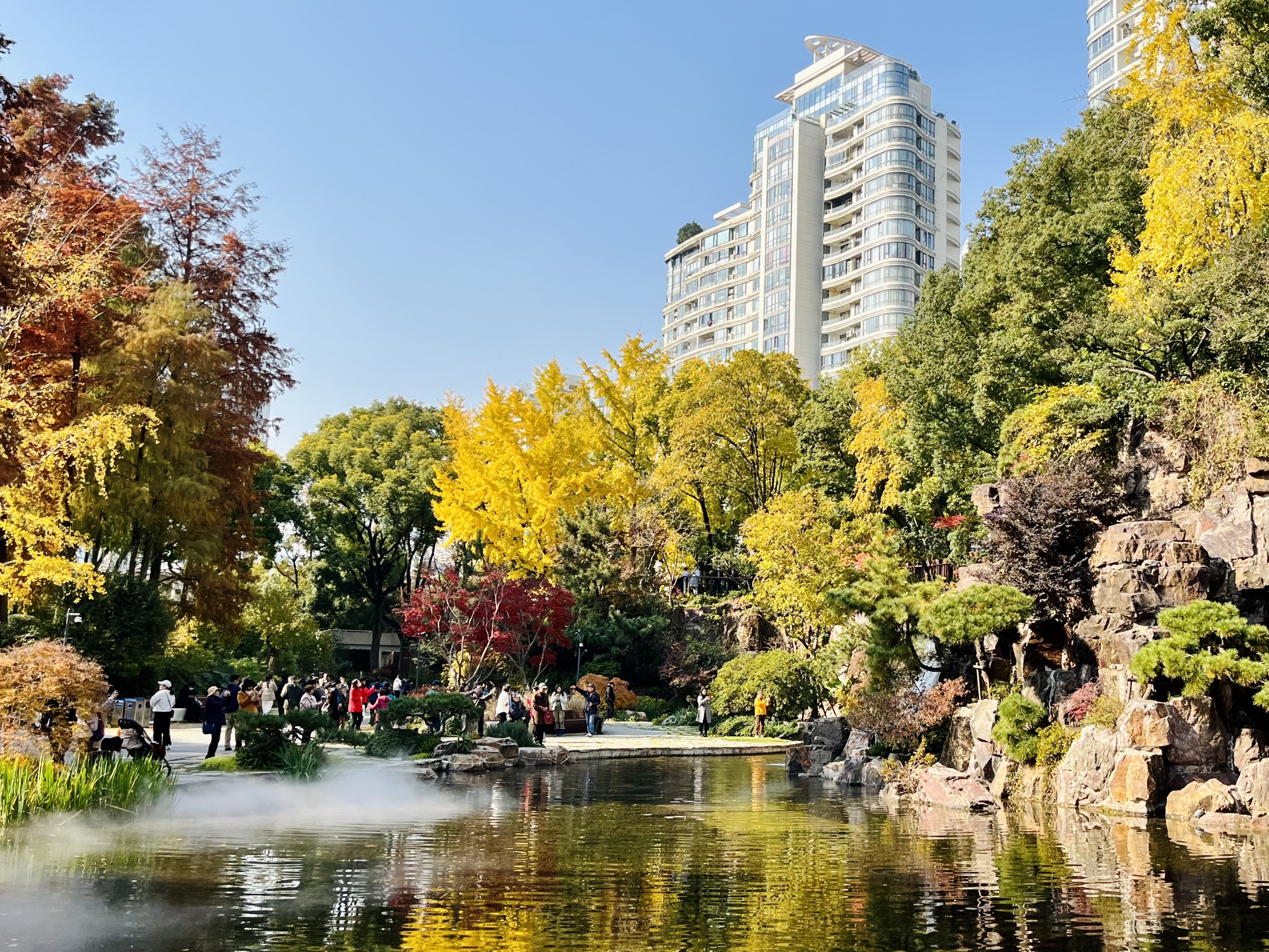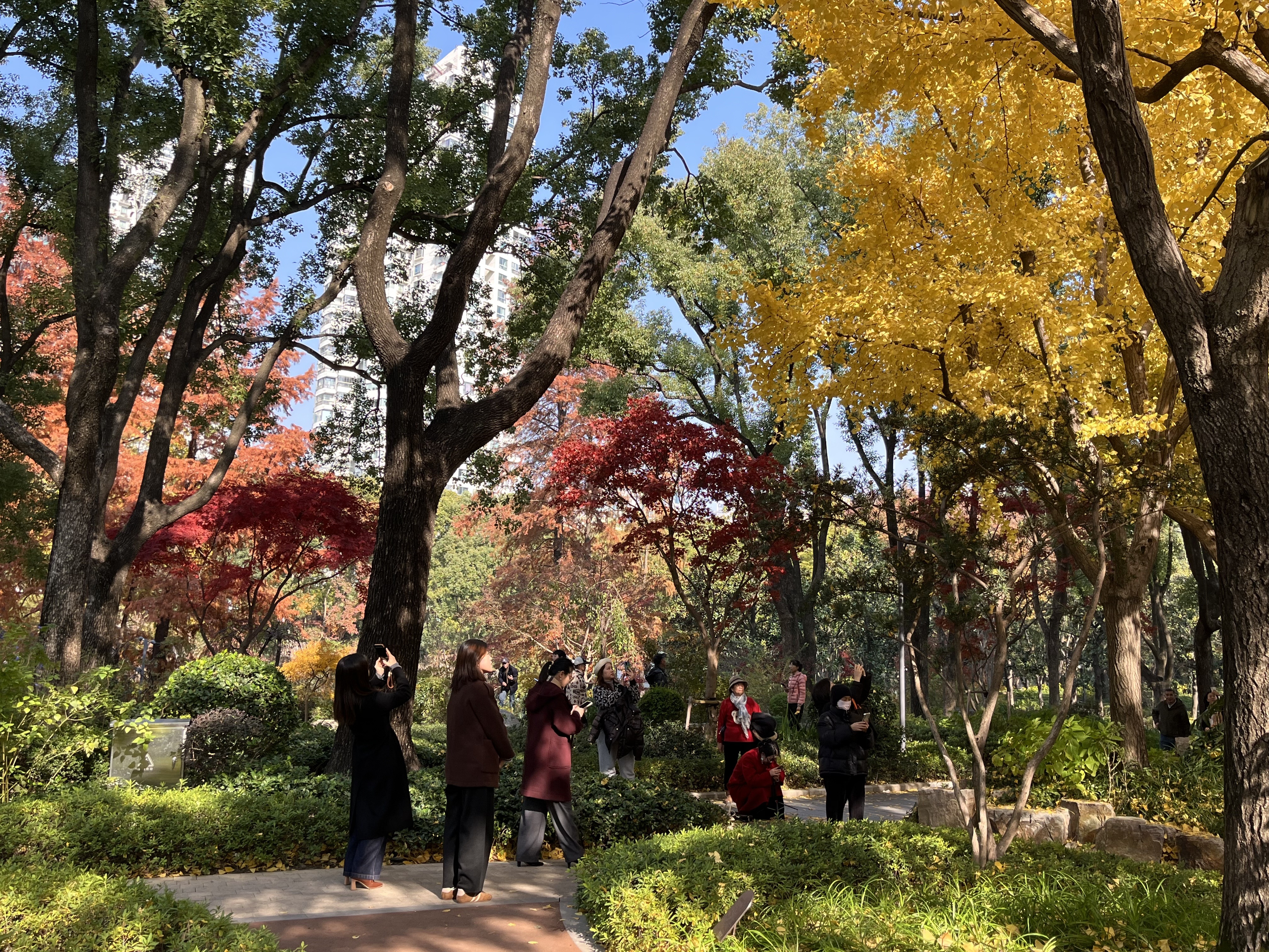 今年春天,延安中路老成都北路西北角的辅德里公园杜鹃花开,美成莫奈笔下的春日花园;转眼到了冬天橙黄橘绿时,园内银杏落金,枫叶红透,水杉斑斓,假山叠瀑,满园浓郁色彩倾泻出醉人的冬日图景。