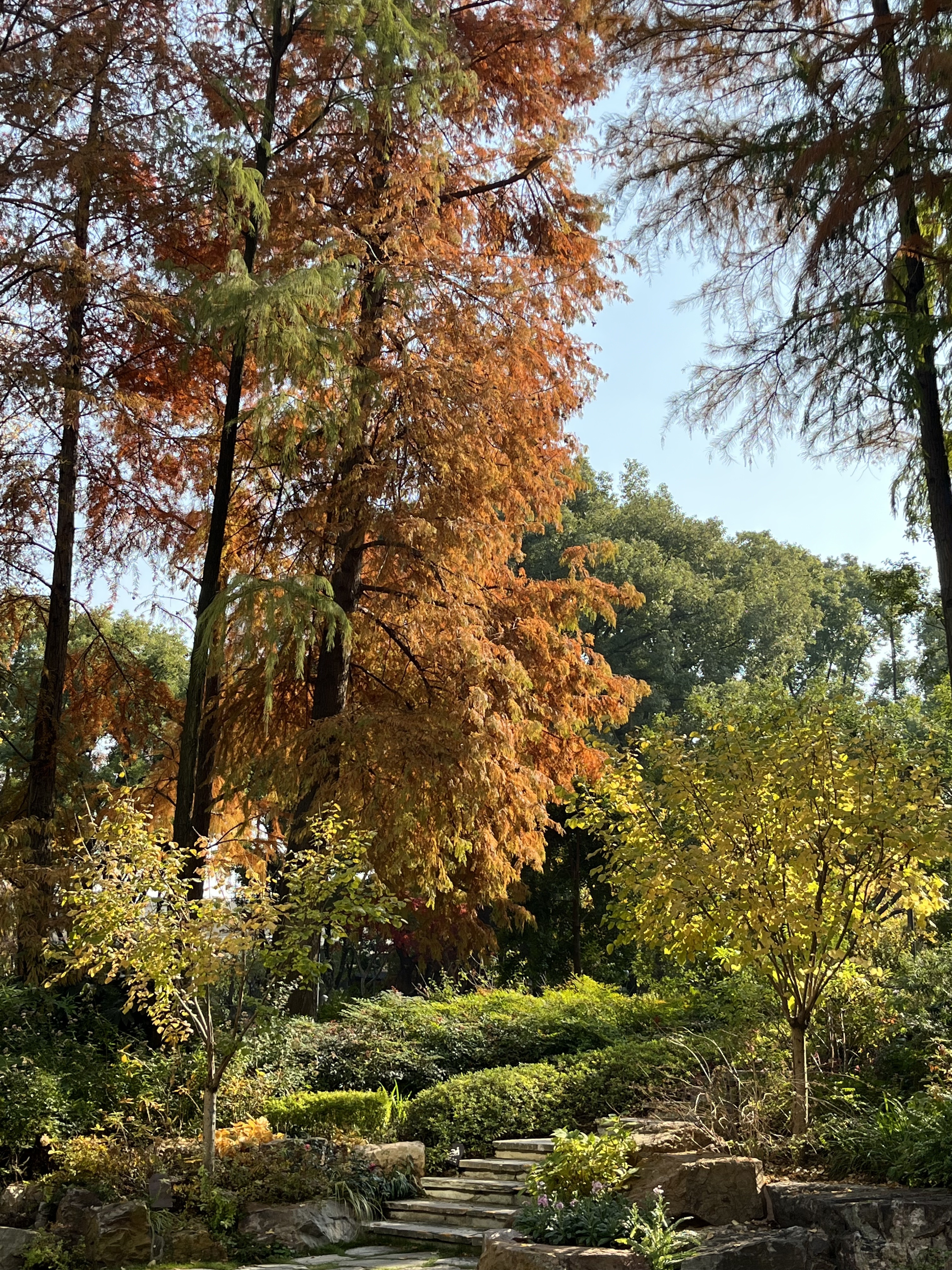层层叠叠的水杉,在阳光下闪耀着暖人的光芒。