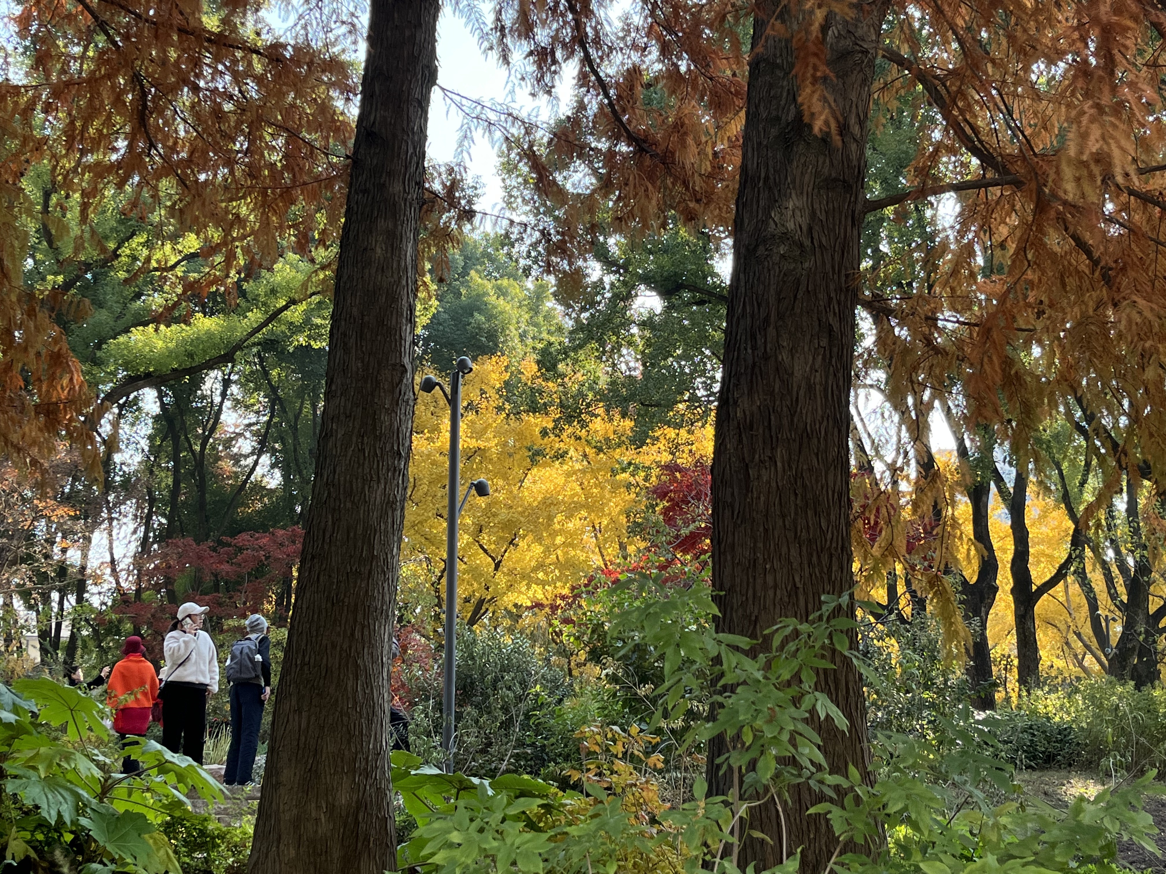 步入辅德里公园,沿着林间幽静小径蜿蜒而上,视线所及是五彩斑斓却搭配相宜的各色冬景,仿佛打翻了色彩的调色盘。