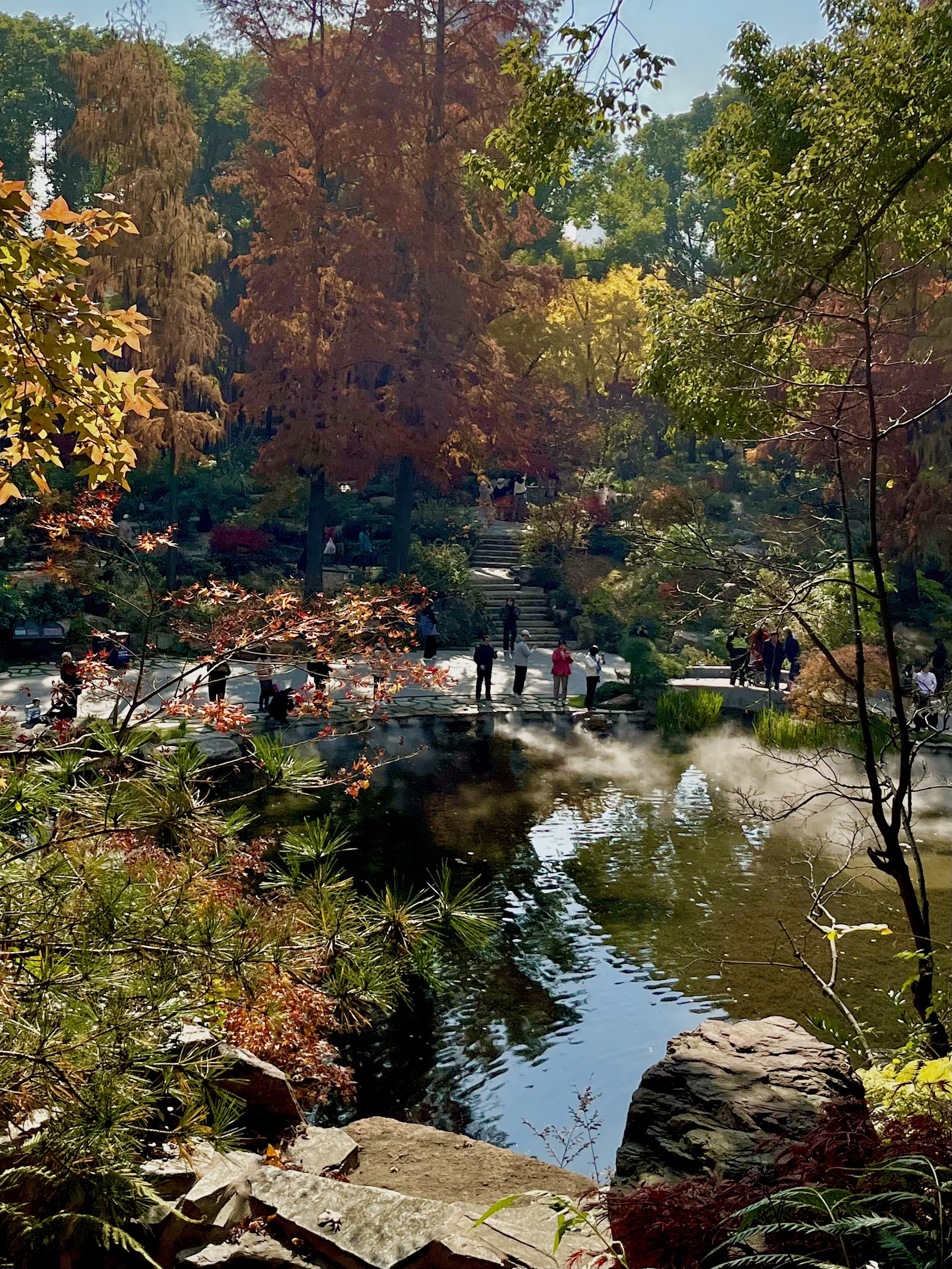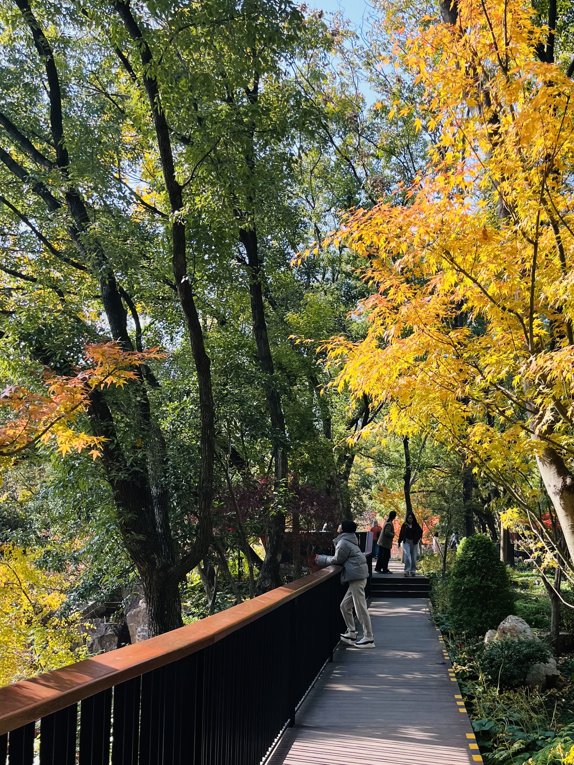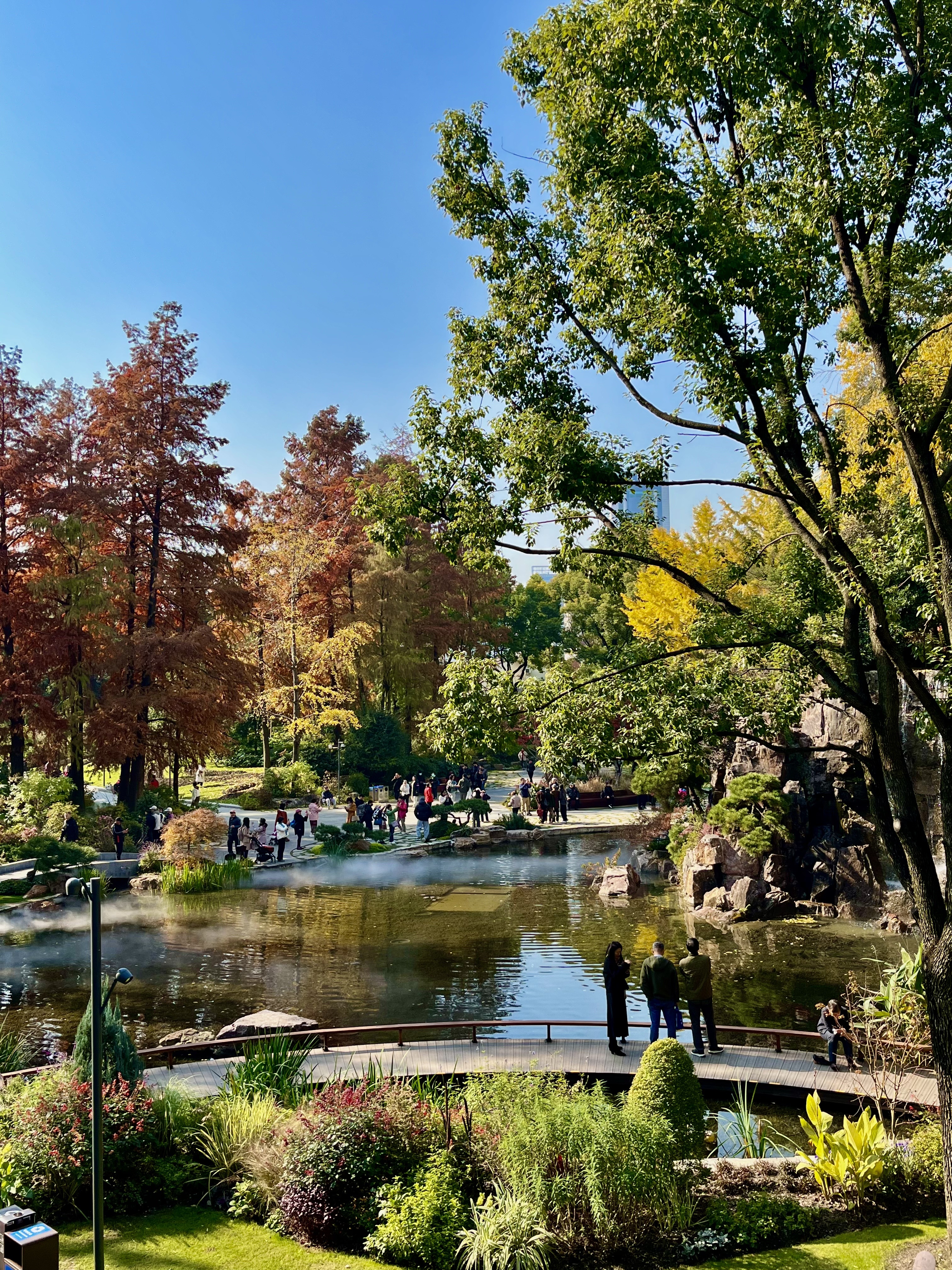 在假山之巅的木栈道上,你可以俯瞰整个公园,将斑斓美景尽收眼底。