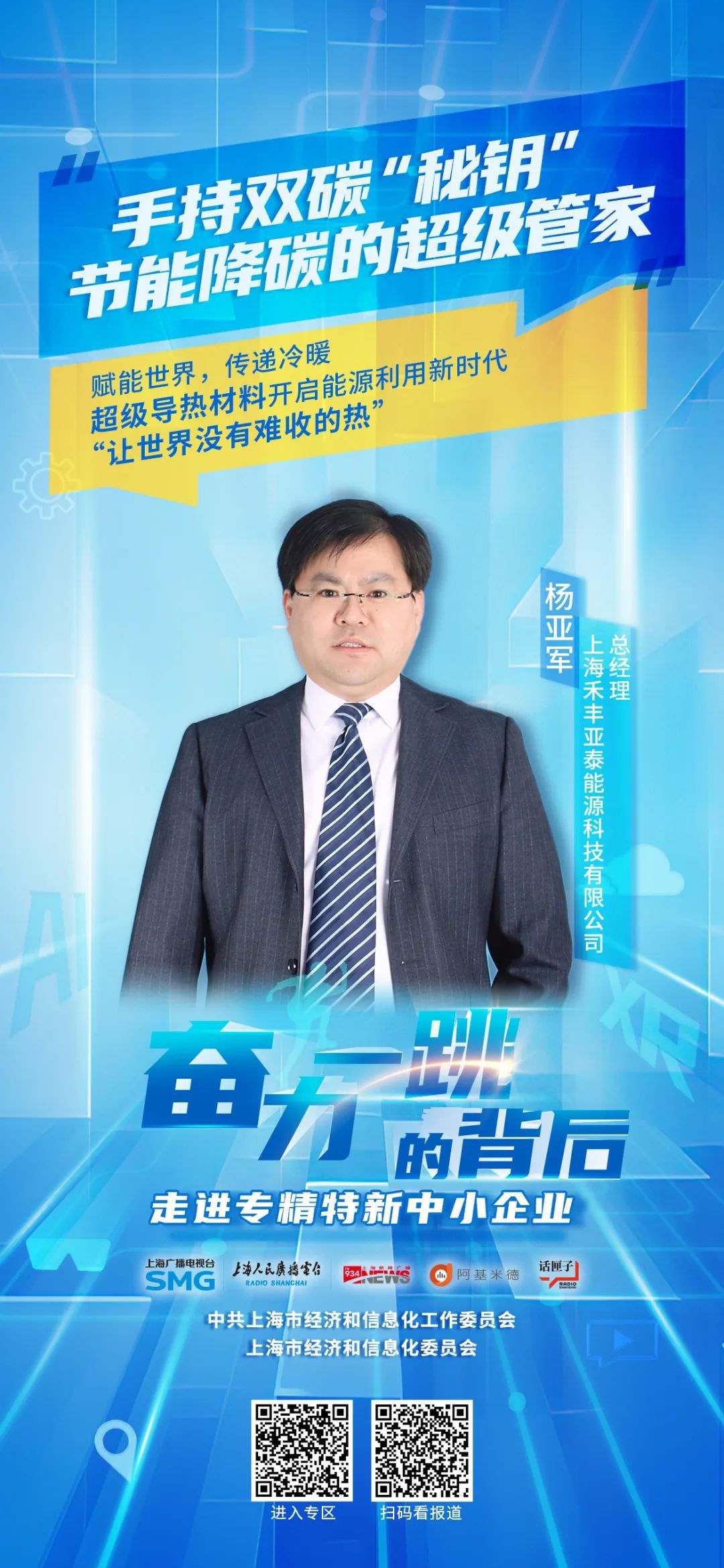 “双碳”政策是我国推动全球脱碳进程、促进能源资源转型、加快经济发展方式绿色转型的重要战略部署。上海禾丰亚泰能源科技有限公司,凭借其国际领先的微热管阵列技术,研发出一系列高效换热及热控技术与产品,为政企提供全方位、分布式、集约化的智慧能源解决方案,助力实现能源效率的最大化和环境影响的最小化。今天的《奋力一跳的背后:走进专精特新中小企业》系列请听报道:《手持双碳“秘钥”,节能降碳的超级管家》。