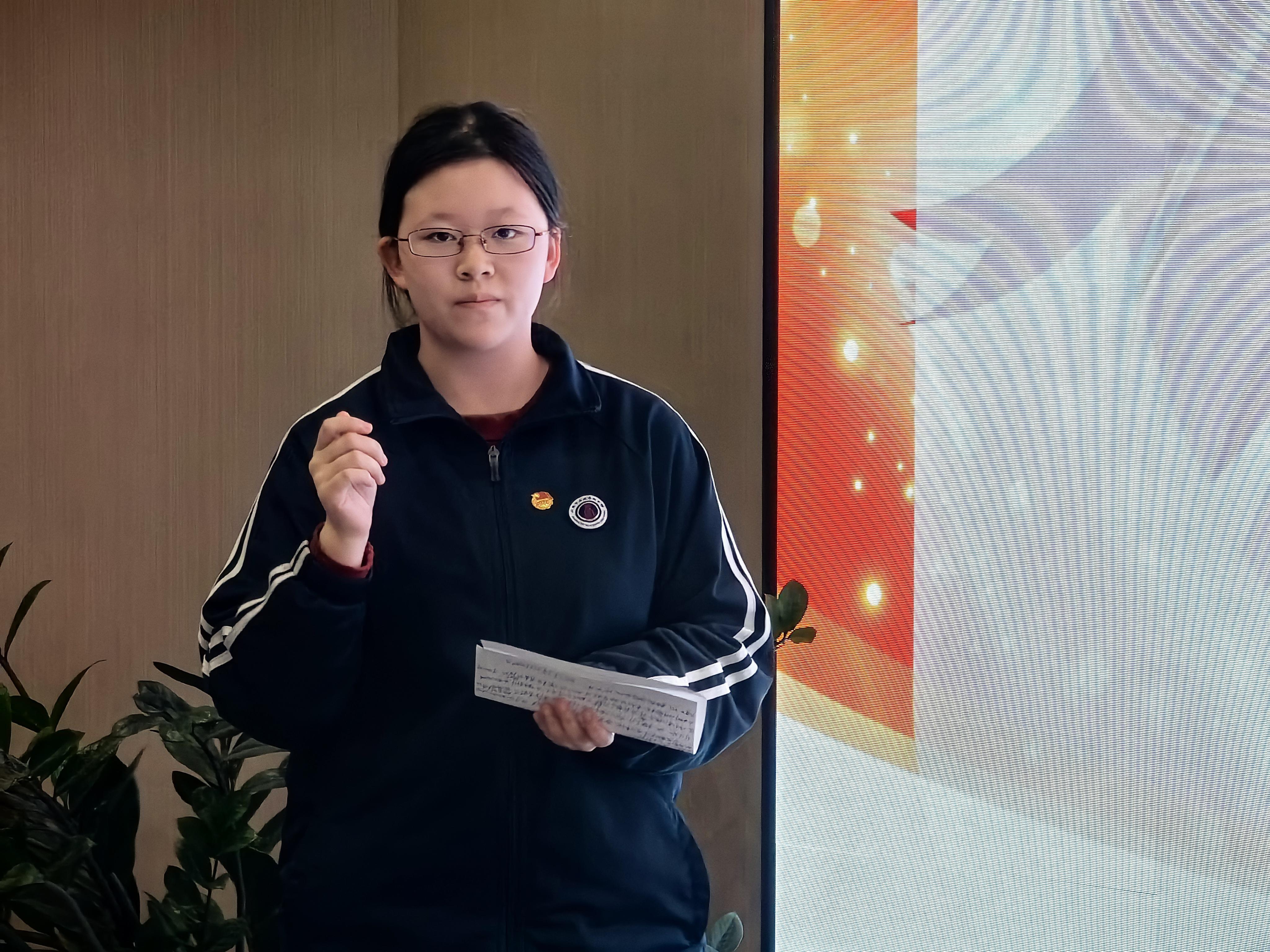 上海五爱高级中学的陈钰彤同学从小就跟随父母参与公益慈善和志愿服务,并将这份热忱延续至今。她不仅积累了丰富的志愿服务经验,更在学校中牵头开展有关志愿服务活动的研究性课题,吸引更多同学加入到志愿服务的行列中来。陈钰彤讲述了她在南外滩志愿者服务亭为市民、游客提供服务的点滴,并坦言:“志愿服务不分大小,每一次的参与,都是对城市温暖的贡献。”