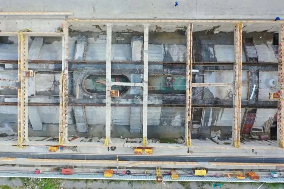 近日,随着轨道交通21号线杨高北路站最后一块拱形顶板浇筑完成,标志着21号线杨高北路站主体拱顶结构实现封顶,同时也为后续附属结构施工打下坚实的基础。