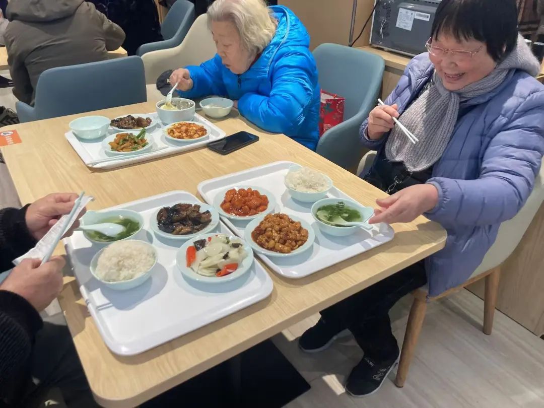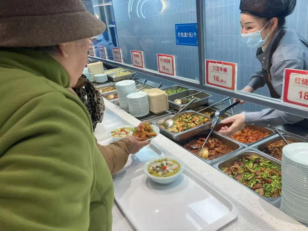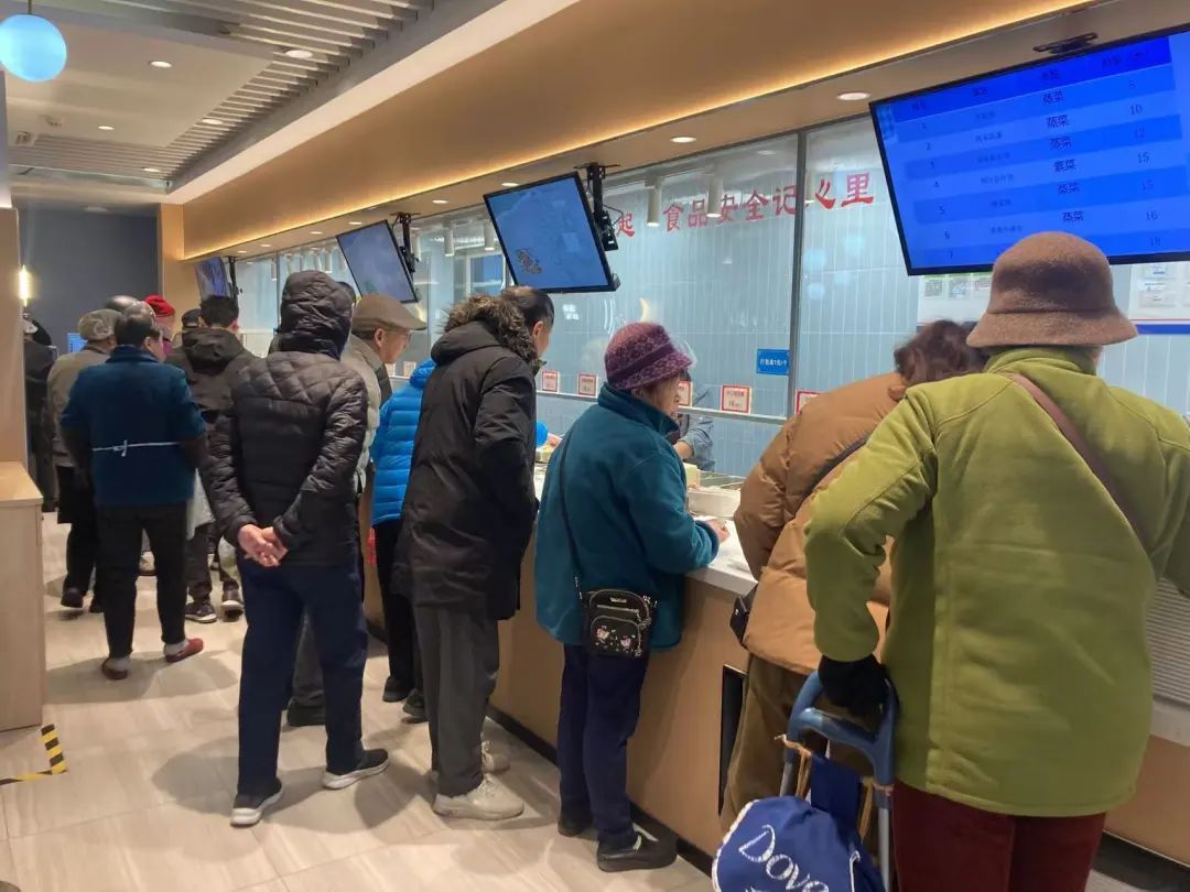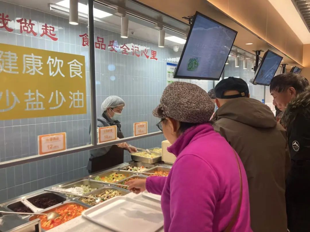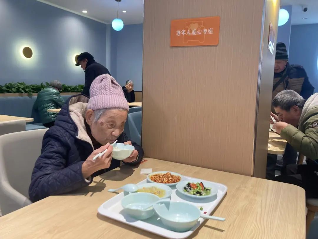 考虑到食堂主要服务对象是老年人,食堂做了很多适老化改造。记者看到,就餐区域专门设置“长者优先座位区”“老年人爱心专座”;所有桌角为圆弧形,避免老人磕碰;采用柔和光线,避免老人眼睛被强光刺激。此外,辖区60周岁及以上老人持街道认证银行卡还享受85折优惠。