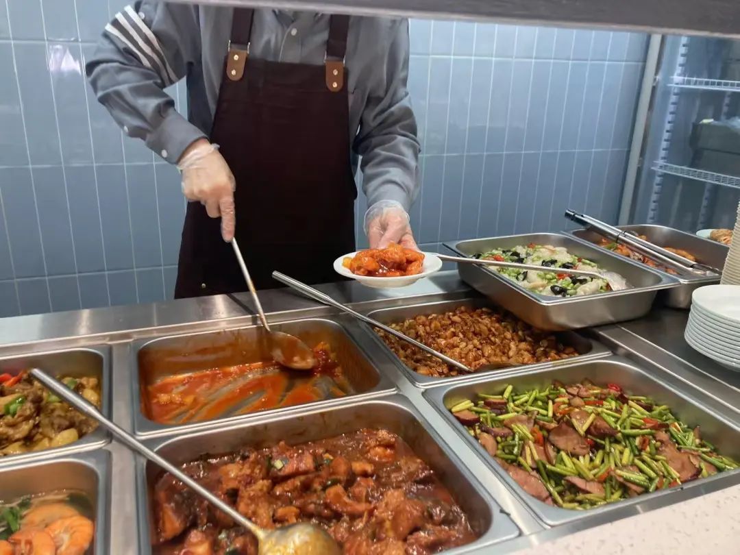 据悉,店内每天中午提供30多种菜品供消费者选择,素菜、小荤、大荤等菜品价格从4元—18元不等,品种丰富。番茄炒蛋、鱼香茄子、肉末蒸蛋、椒盐排条等一道道菜品色泽诱人,令人食指大动。