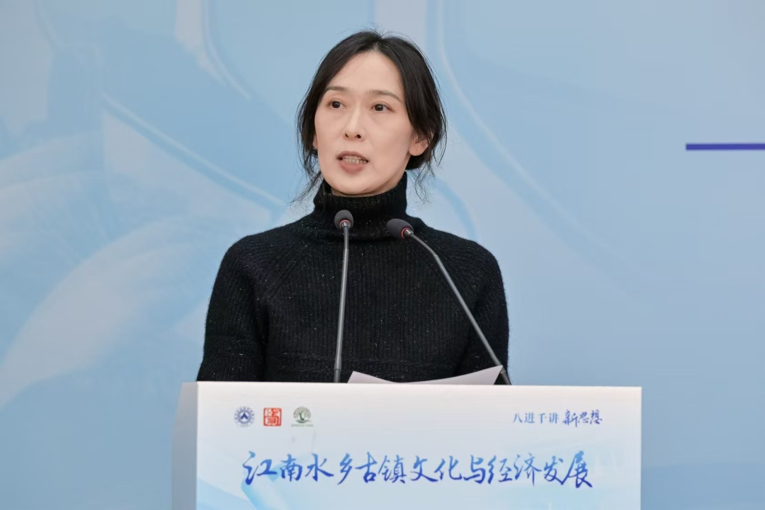 李亚娟分享了古镇经济发展的成功案例和面临的问题。她指出,古镇的经济发展需要依托其独特的文化资源,同时要注重创新和多元化发展,为古镇旅游开发提供了新思路。她认为,要立足特色产业发展实现经济效益和社会效益双提高,以江南文化赋能水乡新城,人文经济激发新动力。