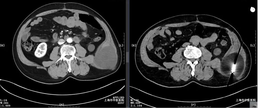 患者肿瘤部位疼痛立即消失,术后第二天,VAS疼痛评分由术前的6分降至0分;同时,消融术后予全身免疫治疗,联合中医药以增强整体抗肿瘤效果。3天后,陈先生顺利出院,出院前左侧腰腹部疼痛已经消失,达到治疗目的,提高了生活质量。