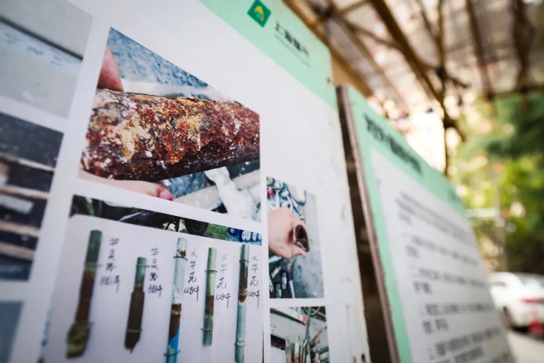穿墙管外除了有套管、防腐胶带等层层包裹外,外面还加装了防水板,靠近居民排烟管、空中网线等地方,也装上了套管或包裹了防腐胶带。