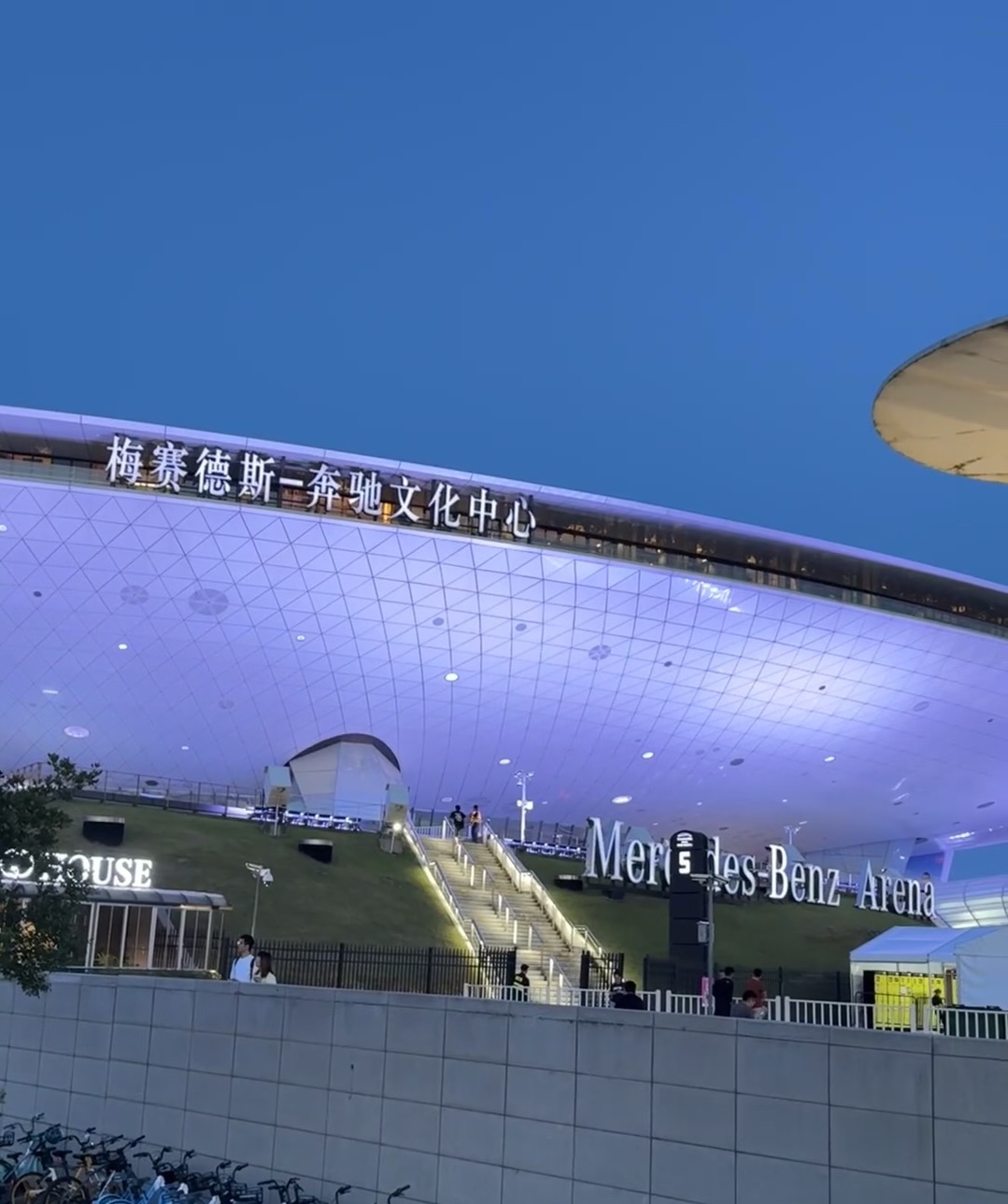看演唱会的好去处,傍晚可以从梅赛德斯奔驰文化中心六楼去场馆外部的环道,绕着环道(有防摔落的网但是可以不影响拍照)走一圈,可以看到中国馆、黄浦江、夜晚的浦西还有远处的上海中心,在那里可以欣赏到绝美日落。