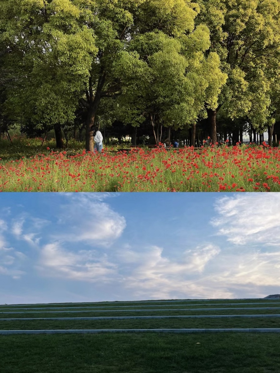 又解锁了一个上海新的公园,世博文化公园真的值得~简直是上海人自己的central park。网红大草坡区,傍晚在这里吹风很舒服,一些地形落差带来了可玩性和汇聚的感觉,对着的湖也还不错,是一个看了就真的想坐下来放松一天的空间。
