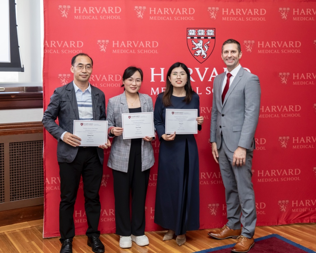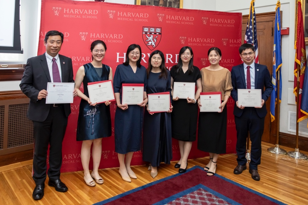 毕业典礼在美国波士顿哈佛大学医学院举行。麻醉科罗猛强副教授、甲乳外科中心张子敬主治医师、放射科陶虹月副主任医师、全科医学林嬴男主治医师、血液科吴婷主治医师、神经内科苏娅主治医师和感染科李杨主治医师7名医师在为期6个月的紧张培训后,不仅顺利毕业,更以优异的成绩和出色的表现,赢得了哈佛授课老师的高度赞誉。