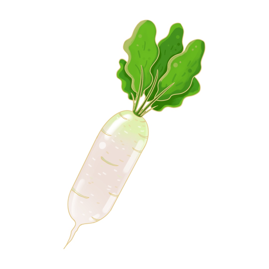 白萝卜性凉(从生吃的角度讲),味辛甘(一般去皮食用),无毒,能消积滞、化痰热、痰嗽失音、呕吐反酸等。白萝卜生吃时具有很强的行气功能,还能止咳化痰、除燥生津、利大小便,但清热解毒的功效并不十分显著。