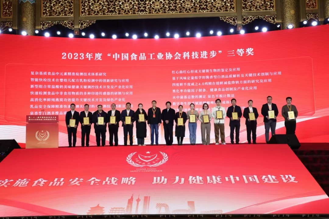 近日,“科技引领发展,共建食业强国” 第二十二届中国食品安全大会暨2024全国食品工业科技进步大会在北京召开,嘉定企业上海东锦食品集团董事长荣耀中荣获“个人创新奖”,东锦集团及旗下“鼎烹世家”和“鲜味科学”两家企业共同申报的项目“四度鲜半度咸之4.0鸡精在提鲜减盐降钠方面的研究及应用”,荣获2023年度中国食品工业协会科学技术奖三等奖。