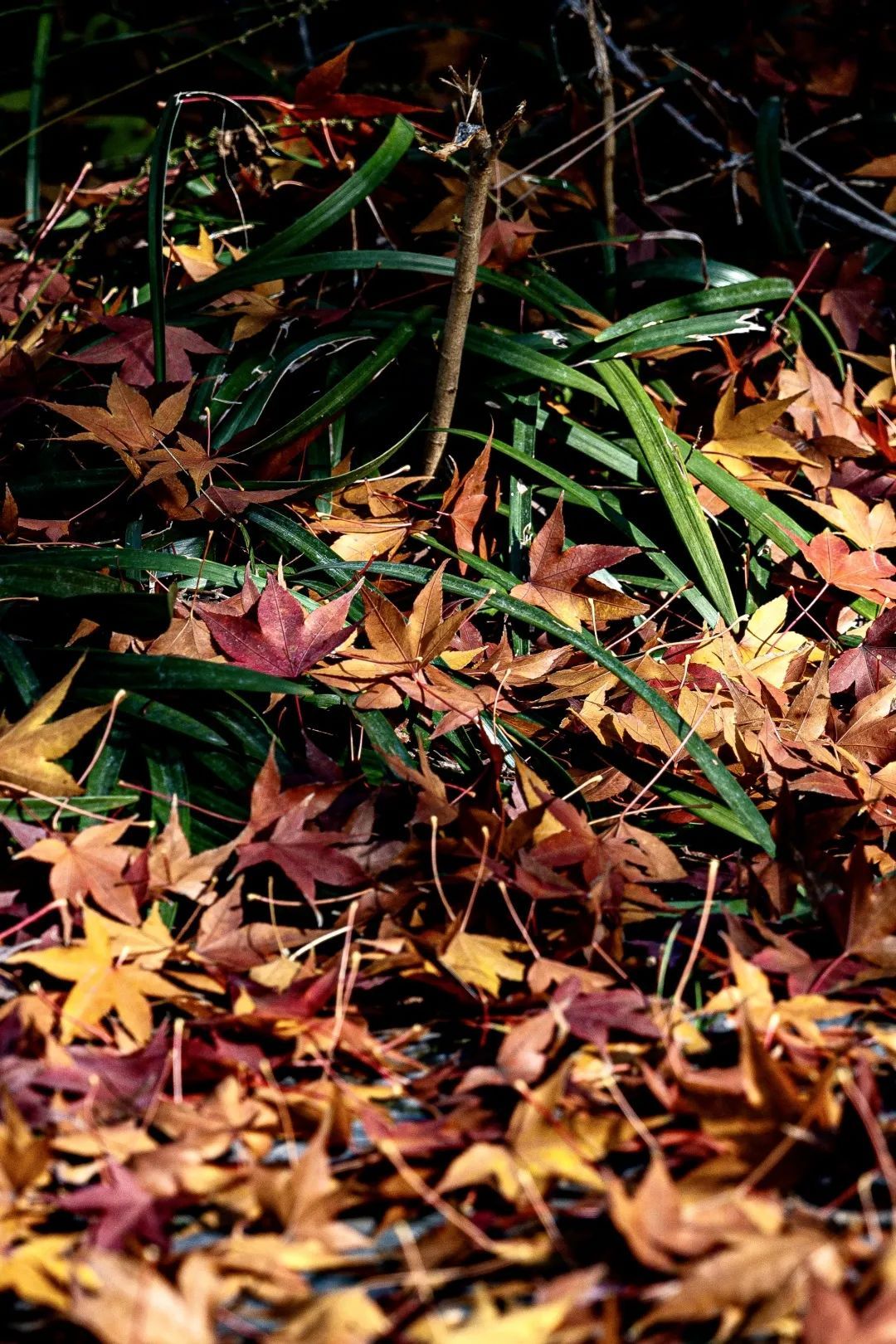 这些沾染霜色的枫叶