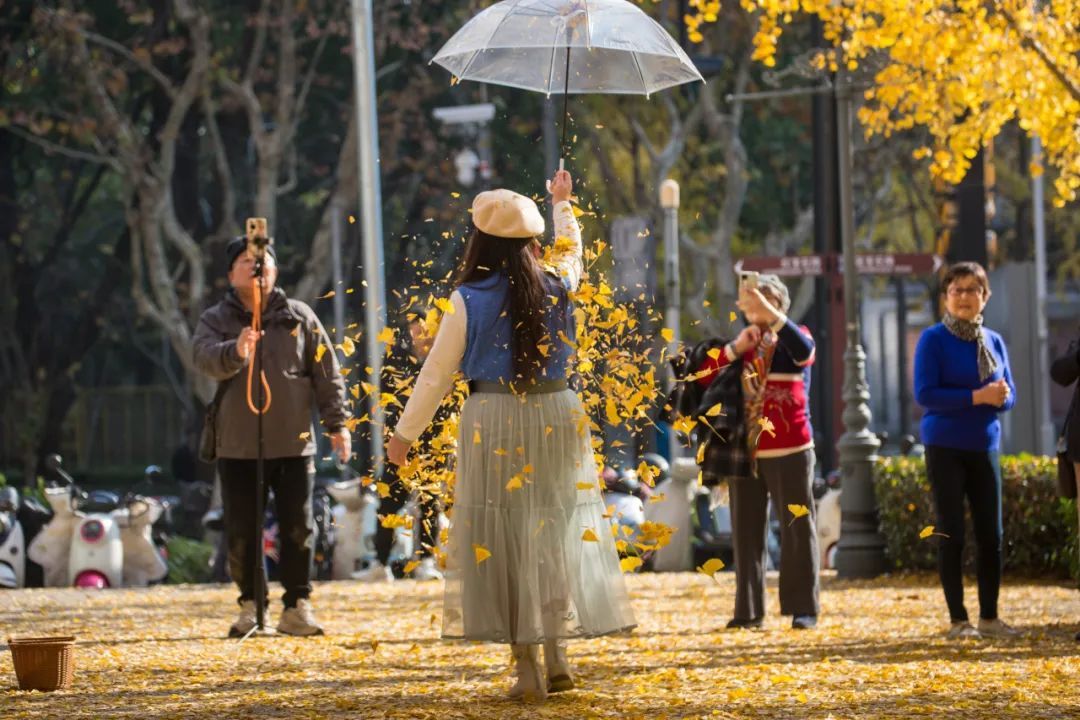 银杏与枫叶在中山公园里相得益彰,宛如大自然施展了奇妙的魔法,使得公园化身为一个梦幻般的童话世界,唯美绚烂,精彩纷呈。