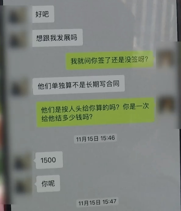 但她发现,和自己见面的一位男会员,每次见面只用交1500元。因此她严重质疑,婚介公司有婚托的嫌疑。对此,万女士还拿出了聊天记录。