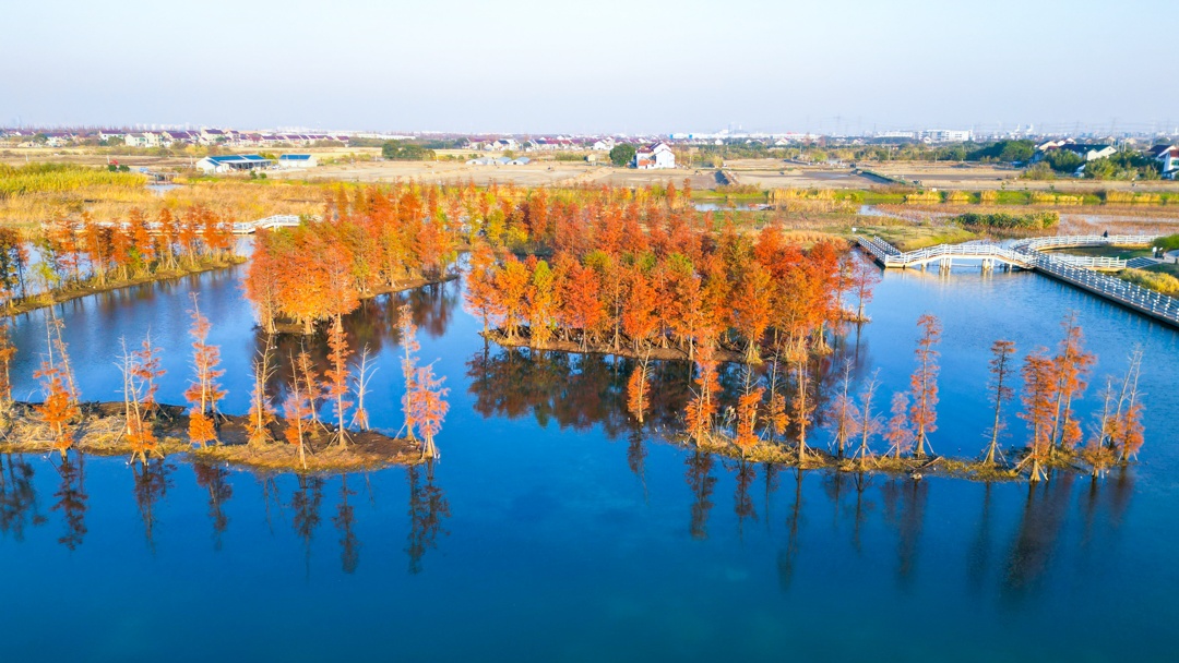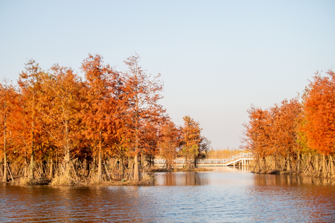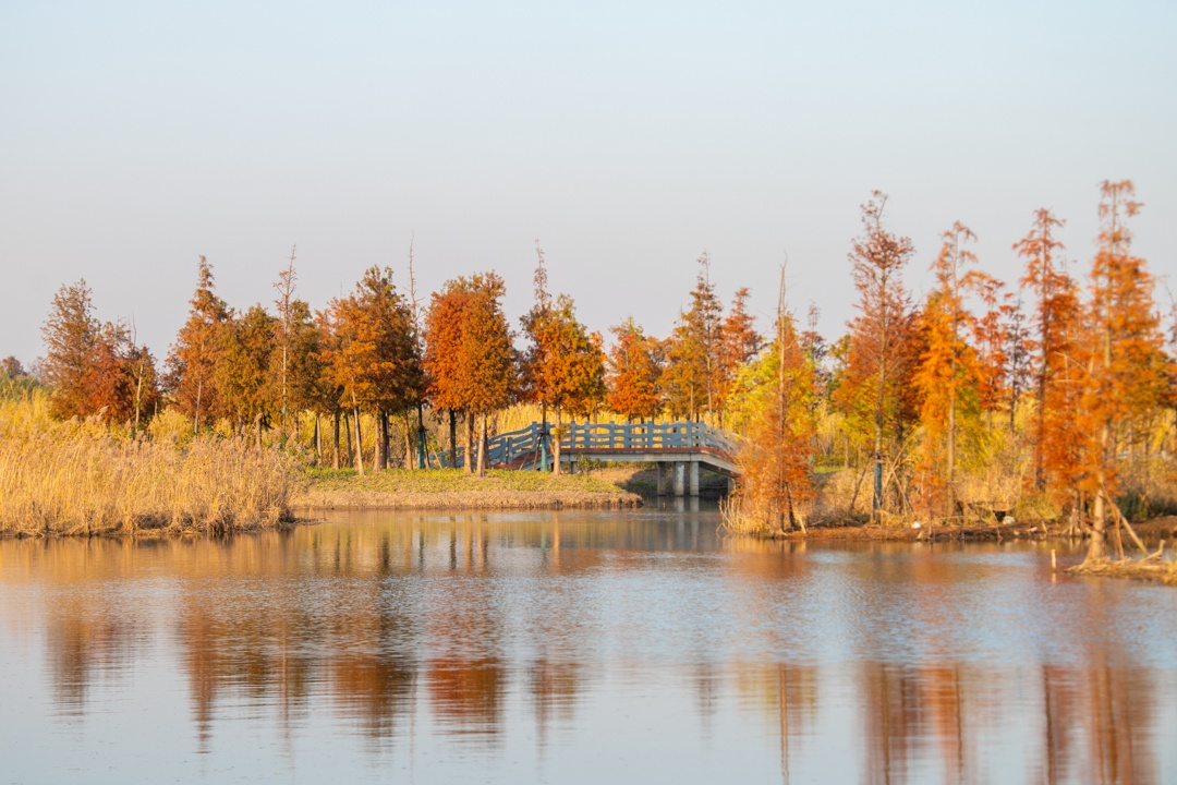 近日漕泾郊野公园的湿地公园换上一袭宁静的“冬装”以其独特的魅力吸引游客前来观赏踏入湿地公园沿着木栈道缓步前行浅浅挼蓝轻蜡透湖面平静如镜倒映着天空和两岸的植被一半湖水,一半红杉构成一幅动人的画卷