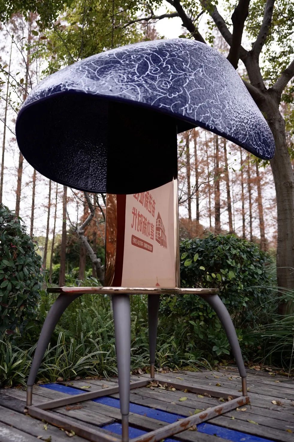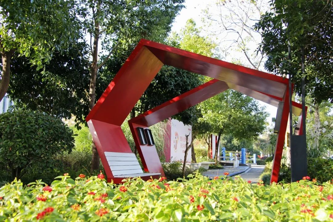 莘庄工业区既是宜居宜业宜创的热土,也承载着无数人的诗与远方。展览现场,邱泾沿岸花草盛开,给冬天增添了一抹暖色。此外,展览还结合了得丘·上海插画小镇研发的城市更新艺术家具,让绿地不仅有了诗意,也有了新意。