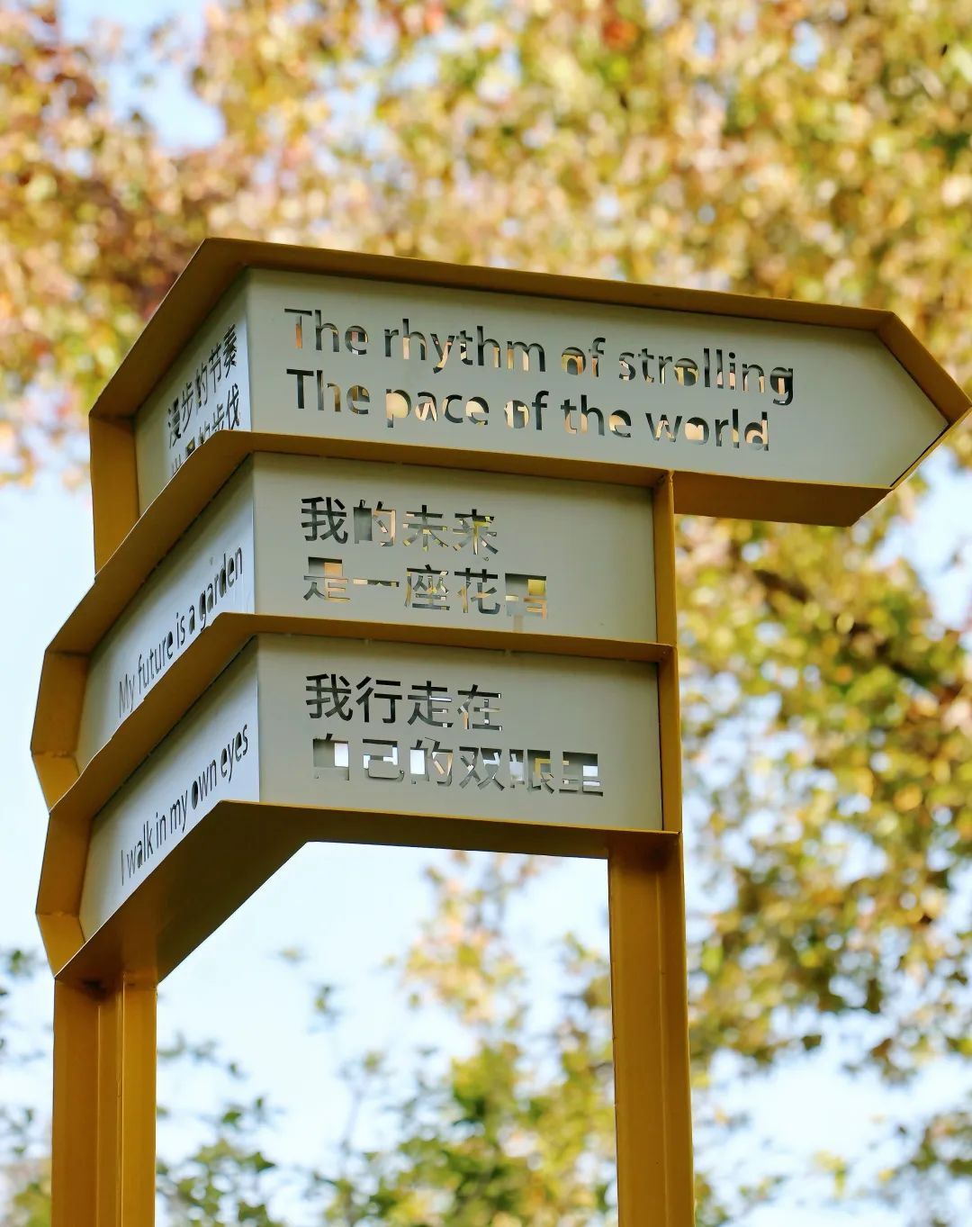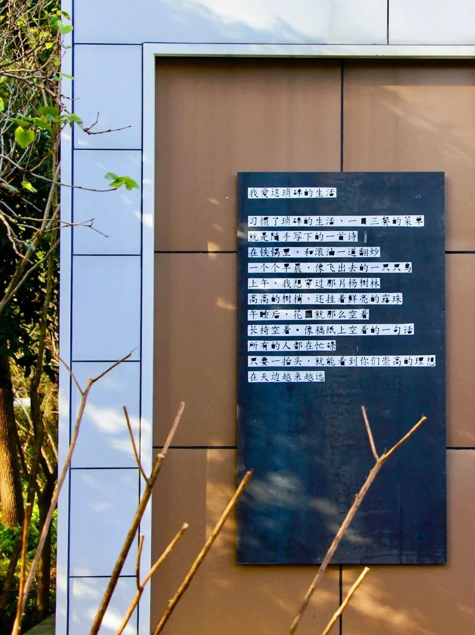 “抽象的抒情”景观叙事展是艺术家一度在莘庄工业区生活多年的所感所思,通过诗歌和艺术装置的形式,记录了莘庄工业区日新月异的变化和发展。这样诗意的城市“微更新”给广大市民提供了“阅读性”和“开放性”的休闲空间。