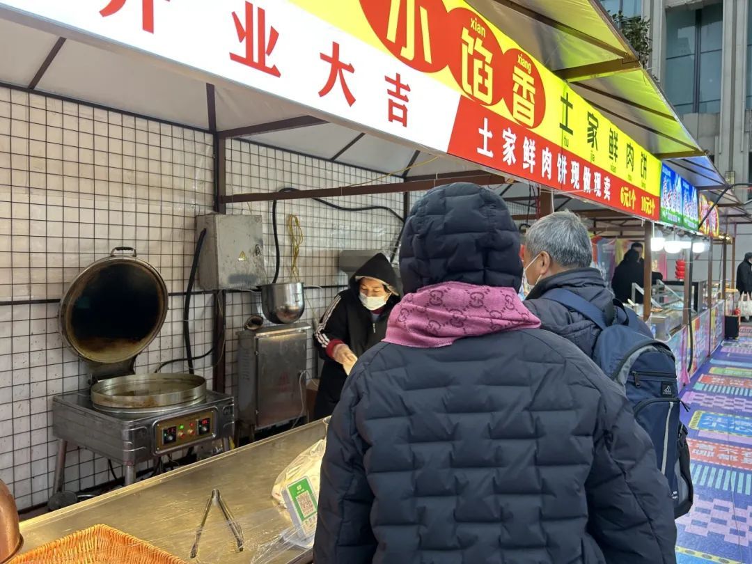 入口处的鲜肉饼摊位格外受欢迎