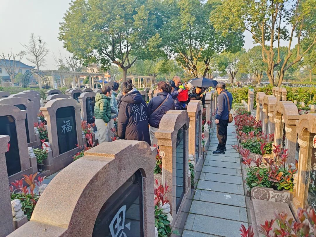今天(12月21日)上午9点,记者在枫泾公墓入口处看到,交警和安保人员在严寒中坚守执勤,全力保障墓园及周边区域秩序稳定、道路顺畅。墓园内,前来祭扫的市民络绎不绝,在工作人员的引导下,有序入园祭扫。