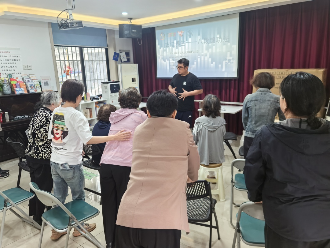 长桥社区文化活动中心在光华居委举办了一场古法养生——八段锦功法讲座。讲解老师介绍了八段锦的起源和发展历程,并详细讲解了八段锦的动作要领和呼吸方法。在老师的带领下,大家纷纷模仿练习,现场气氛热烈而融洽。