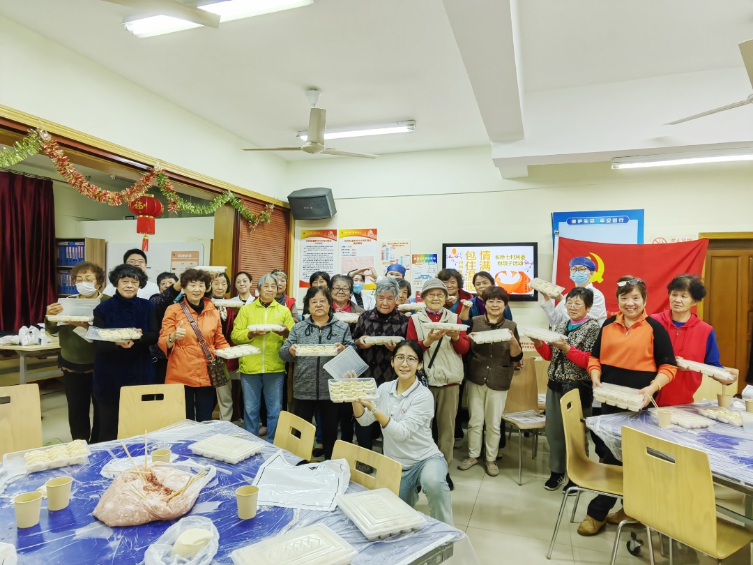 园南二村居委和长桥七村居委开展了包饺子活动。大家围坐在一起,熟练地揉面、擀皮、调馅、包饺子,欢声笑语回荡在整个空间。在请大家品尝完自己亲手包的饺子后,社区工作人员和志愿者们还将一份份装满爱心的饺子送往社区百岁老人、高龄独居、孤老和高龄纯老的家中,传递出社区浓浓的暖意。