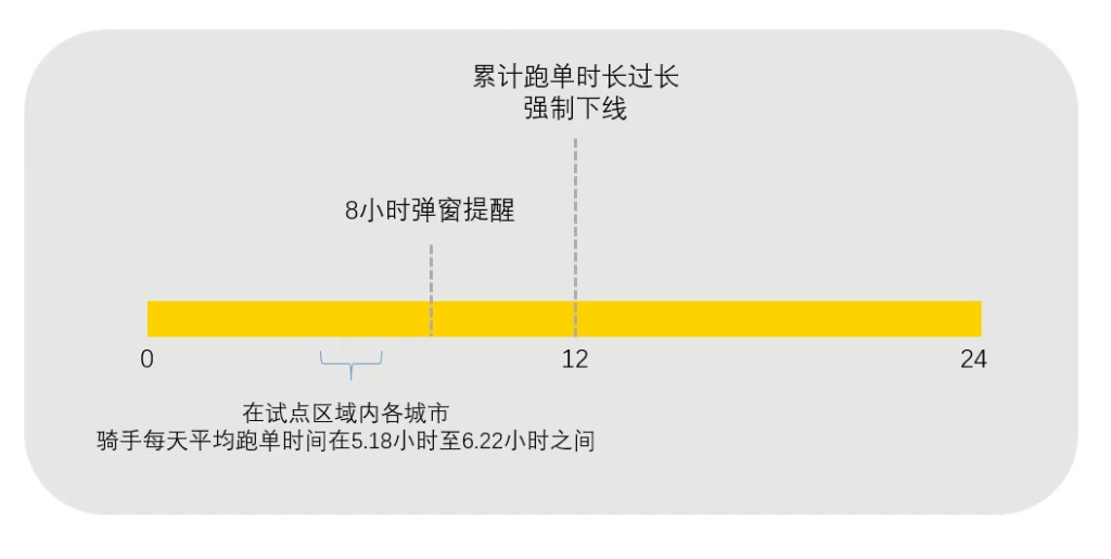 在此基础上,美团明确了疲劳提醒以及骑手下线规则:单日实时累计有单时长大于等于8小时,实时触发“休息弹窗”强提醒,骑手若不进行休息,则定期触发一次。当日实时累计有单时长大于等于12小时,且单日完单量大于10单,就强制下线休息,当天不再支持跑单。