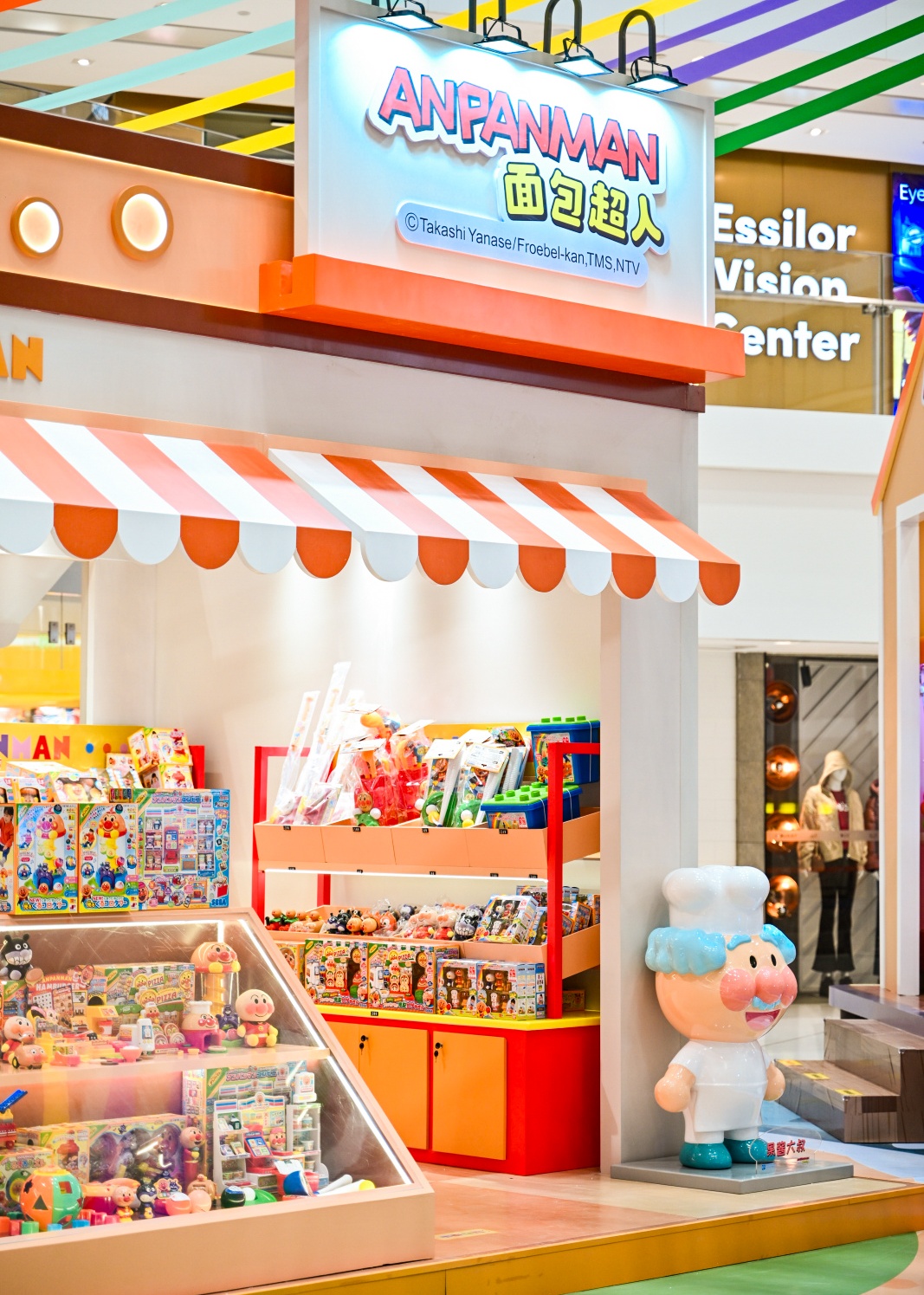 海岛旁伫立着一座“海上灯塔”,探险家们可循着它的方向前进。船侧是神秘的“丛林世界”,撞球挑战、码头垂钓、抓娃娃机等小游戏可满足大小朋友的玩趣体验。“下船”至“码头”可抵达“海边木屋”,摆件、玩偶、文具、玩具等品类的IP周边一应俱全,可满足面包超人粉丝们的收藏需求。