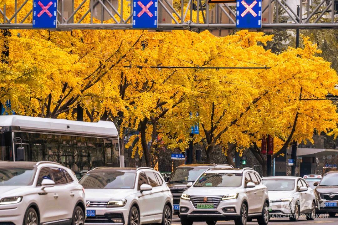 来到四平路,你将被另一番美景所吸引。四平路(大连西路至海伦路)的“银杏大道”也迎来了它的高光时刻。