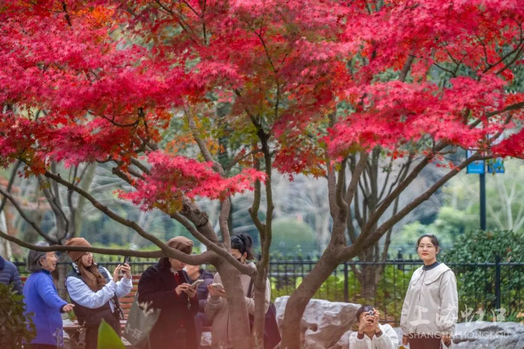 这些枫树以青枫、红枫、鸡爪槭为主,它们在这个时节竞相绽放,红叶、黄叶、绿叶互相簇拥着,色彩斑斓,仿佛打翻了大自然的调色盘。阳光透过树叶的缝隙洒下斑驳的光影,让人感受到一种别样的温暖。目前正是鲁迅公园枫叶的最佳观赏期,小伙伴们千万不要错过这个机会,快来这里打卡吧!