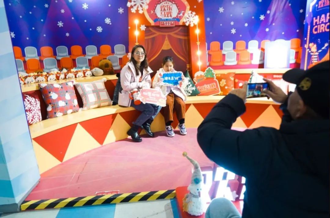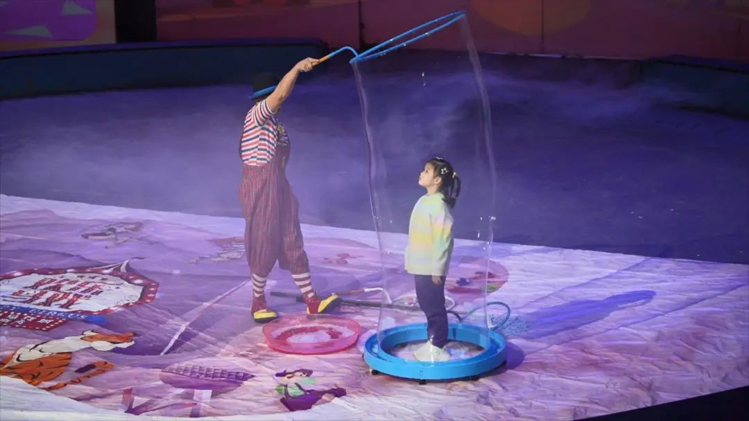 演出季开幕当天,《欢乐马戏》剧场内外装点一新,还设置了游戏打卡区域,可谓跨年仪式感十足。不少家长带着小朋友前来观看马戏表演、泡泡秀、动物表演、魔术展示等精彩节目。