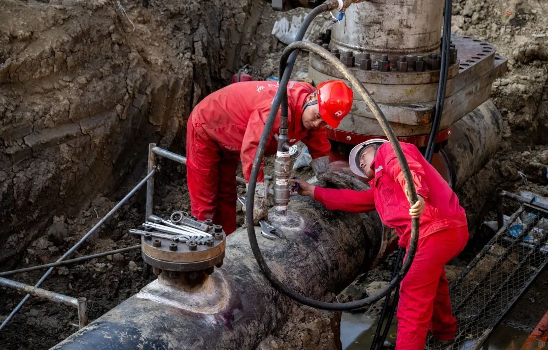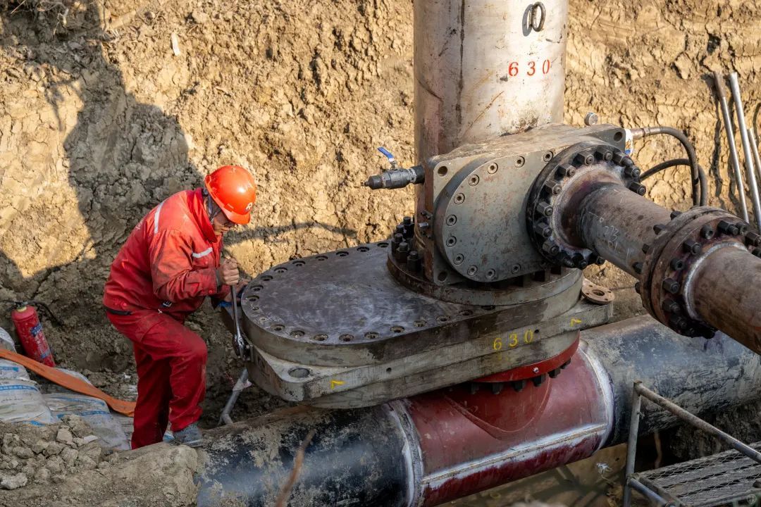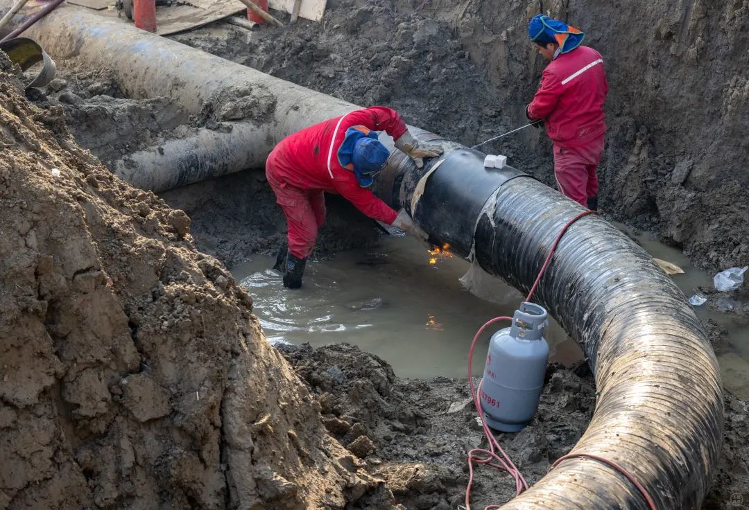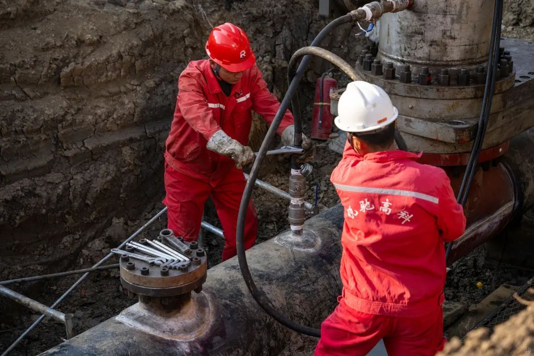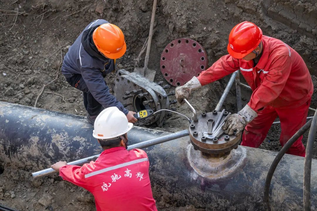 现场负责人说,从17日开始为期四天四夜的带气施工,现已进入最后阶段,晚上9点左右新管道便可完全投运。