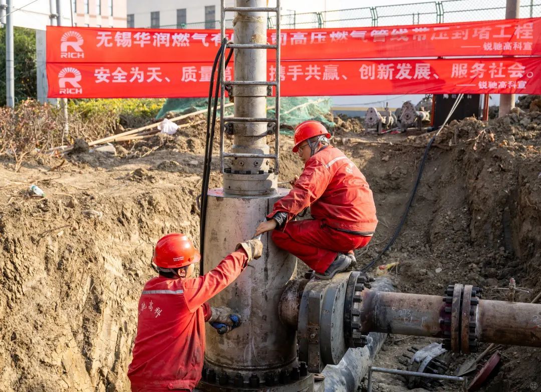 “为保障施工期间马山、胡埭一带燃气用户正常用气,无锡华润燃气进行不停气作业,作业时先对胡埭站‘两头’封堵,然后新建一根旁通管线以供临时输气,等所有管道施工完成再通过不停气作业实现锡常两地燃气互通,整个过程必须一气呵成。”