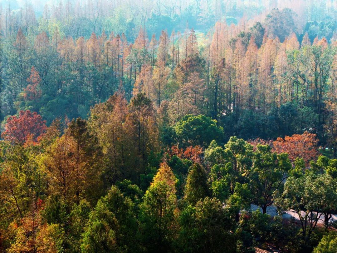 随着冬日的序曲悄然响起,大自然以它独有的方式铺展开一幅幅绚烂的画卷。入冬后的杉树仿佛被时间的画笔轻轻点染,每一棵树都披上了火红的华服,枝丫间跃动着生命最炽热的色彩。跟着市绿化市容局的脚步,一起走进这如梦似幻的杉树林。