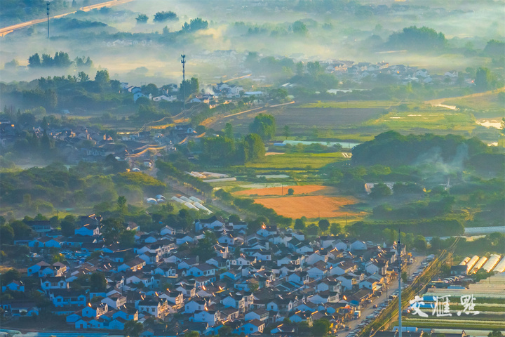 5月28日,南京江宁区出现平流雾景观,一座座村落披上美丽的“薄纱”,在晨曦的映照下,犹如水墨画,静谧美好。蒋文超 摄