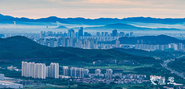 7月3日早晨,远眺常州溧阳新城,山峦叠嶂,晨雾在群山与城市间弥漫,静谧而深远。车保华 摄