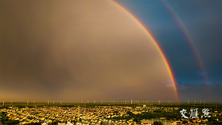 8月5日,盐城东台市弶港镇迎来雷阵雨天气,降雨渐止时,天空出现两道美丽的彩虹,美不胜收。计海新 摄