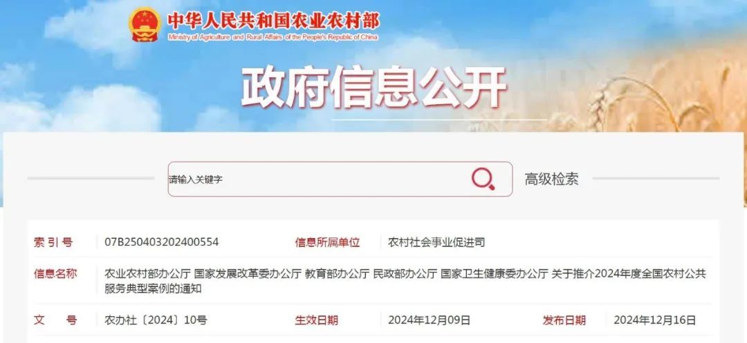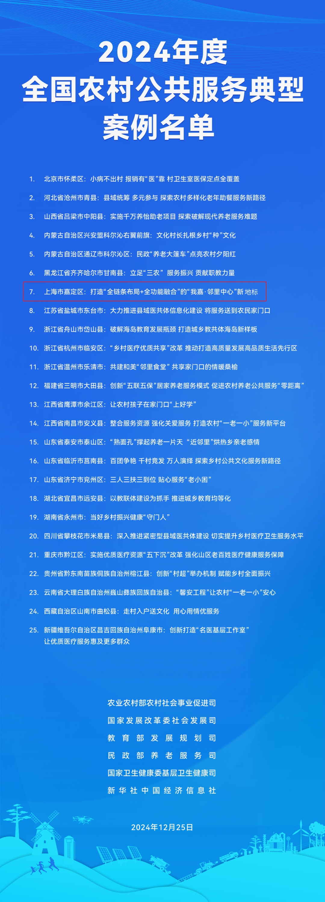 12月25日,农业农村部、国家发展改革委、教育部、民政部和国家卫生健康委等在京联合发布2024年度全国农村公共服务典型案例。这是自2019年以来,农业农村部连续第6年联合多部门围绕农村公共服务召开案例成果发布会,累计推出的6批126个优秀案例,为各地加快发展农村公共服务、改善农村生活条件提供了重要借鉴。