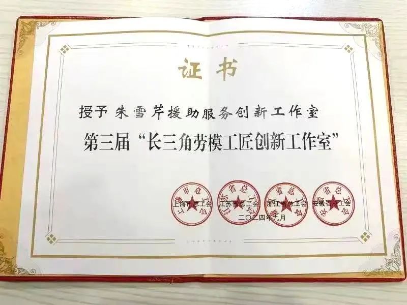近日,2024年推进长三角高质量一体化 发展工会联席会议召开 朱雪芹援助服务创新工作室 被授予第三届“长三角劳模工匠创新工作室” 2016年,以普陀区全国劳模朱雪芹领衔,由专业律师、工会法律援助工作者组成的朱雪芹职工法律援助创新工作室成立。秉承“服务职工、依法维权、促进和谐”的工作理念,为广大职工提供法律咨询、代写文书,代为参与协商、调解,代理仲裁、诉讼等法律援助服务。 至2024年11月,工作室共接待来电来访法律咨询近2.5万人次。工作室提供代书,代为参与协商、调解,代理仲裁、诉讼并已办结的法律援助案件9200余件,挽回经济损失2.4亿余元,且做到了“零投诉”“零争议”。 2018年,工作室办理的“谁动了我的奶粉钱”(李某某生育津贴差额案)获得了全国“依法维护妇女儿童权益十大案例”。2020年,工作室办理的“残疾职工权益两次受损 工会法援维权两度成功”“孕期女职工的请假审批应从宽处理”被评为“上海工会维护职工权益十佳案例”“上海工会维护职工权益优秀案例”,工作室办理的《谁动了我的生育生活津贴》获全国工会“尊法守法∙携手筑梦”法治动漫微视频二等奖。2024年,工作室领衔人朱雪芹荣获第一届全国和谐劳动关系创建工作先进个人。
