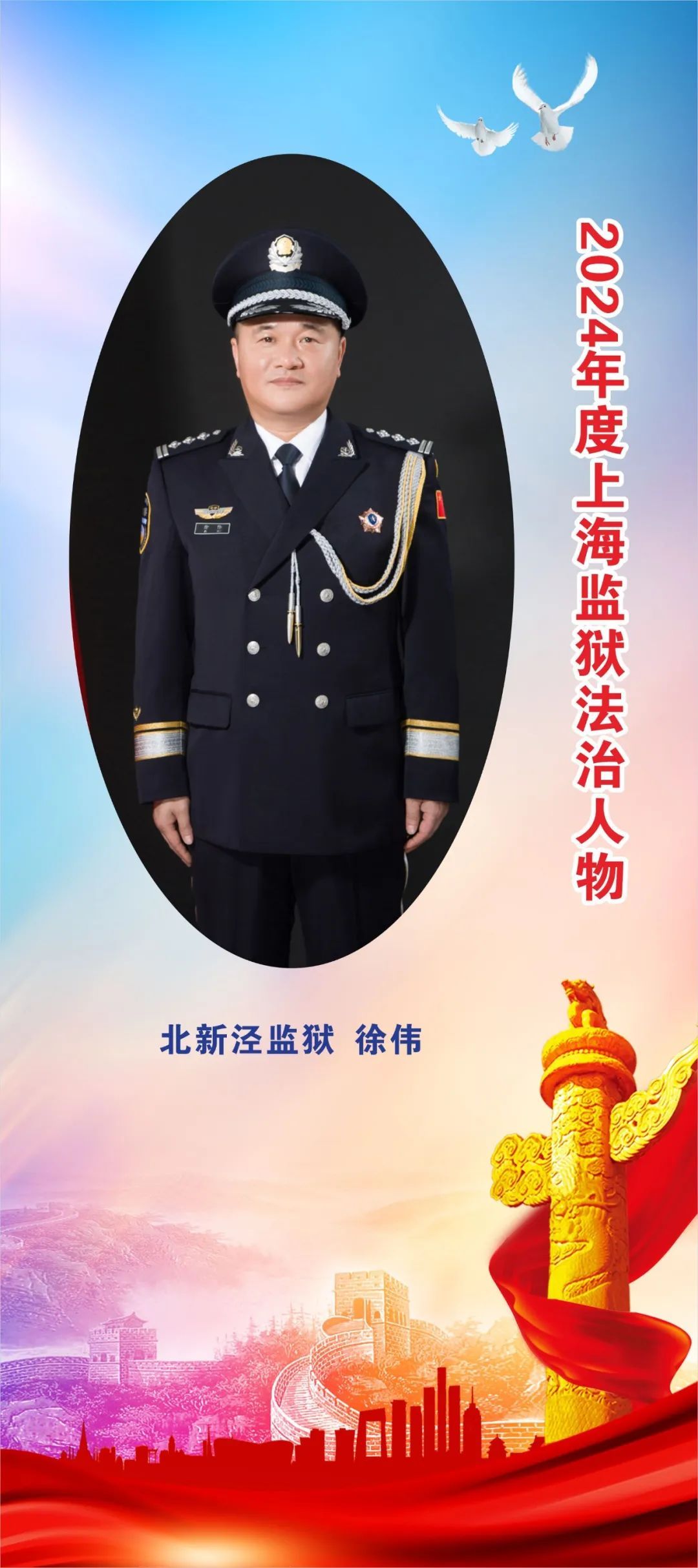 桑榆虽晚,为霞满天。他常说“我是北新泾人,我的根在新泾,我的情怀在新泾,我的奋斗目标也在北新泾。”有着近40年警龄的徐伟,在法治监狱建设的征途上,初心不改、深情依旧,书写着北新泾监狱的法治故事。