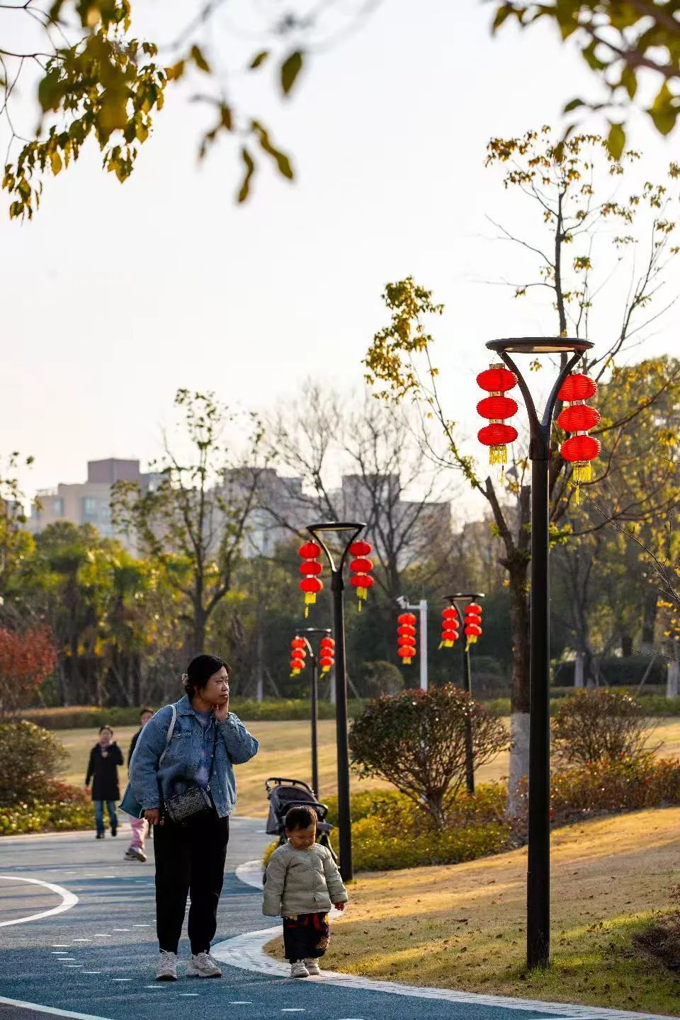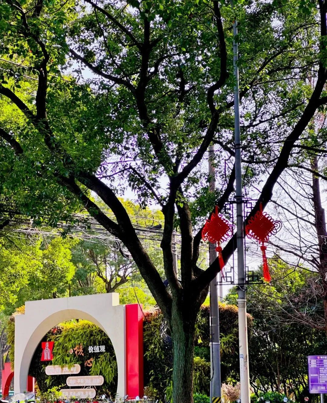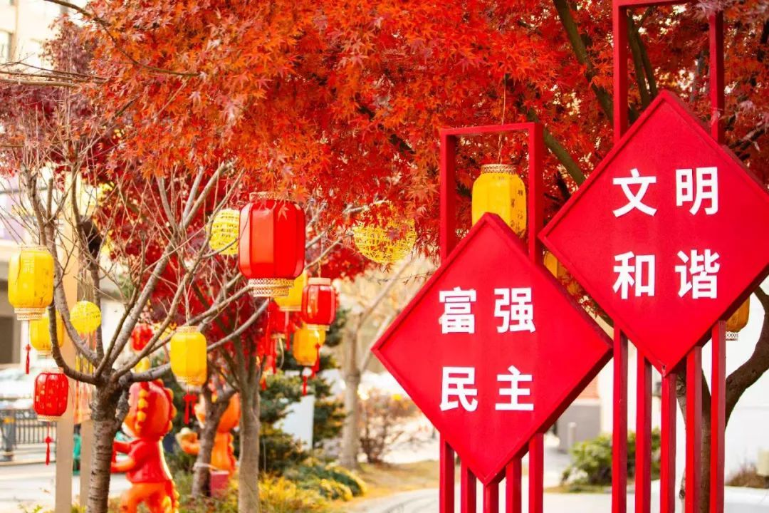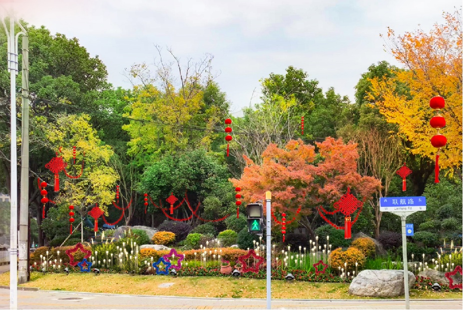 元旦前夕,古美路街道大街小巷迎新氛围浓厚。在古美公园、合川路步道、爱乐园等公共空间,大大小小的红色灯笼和中国结或挂在枝头,或垂于廊架,连成了一片红火的海洋。